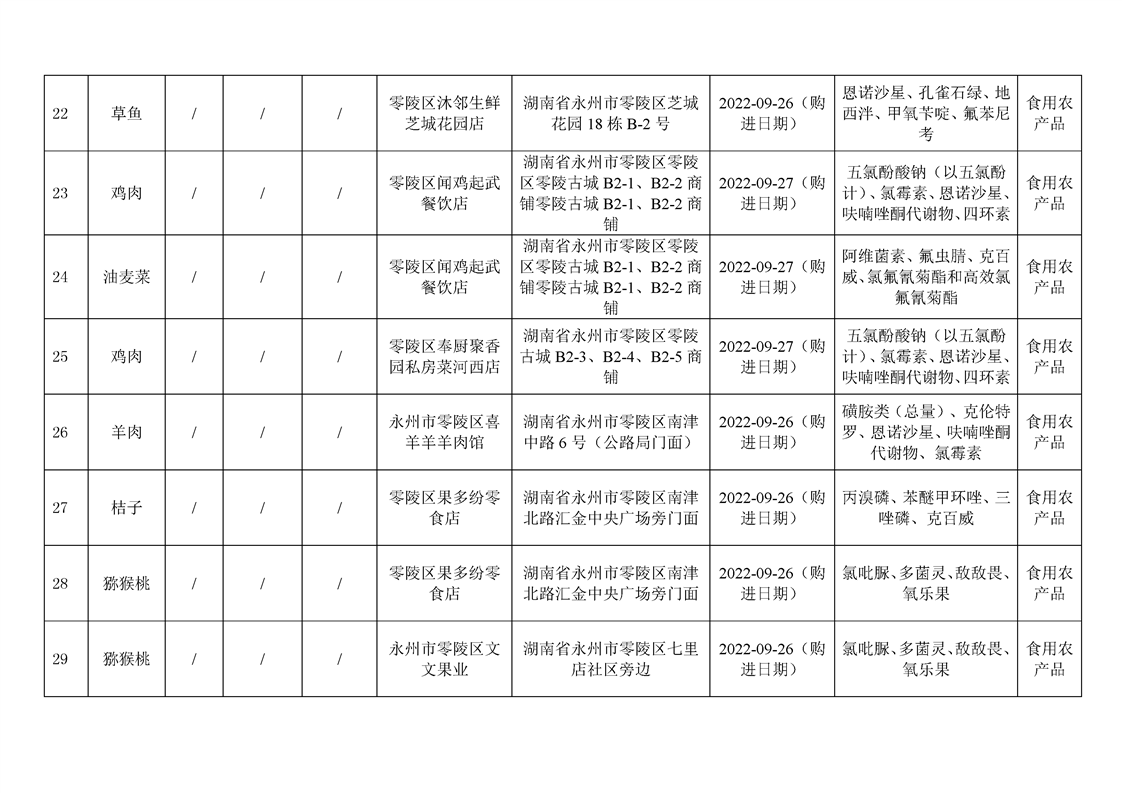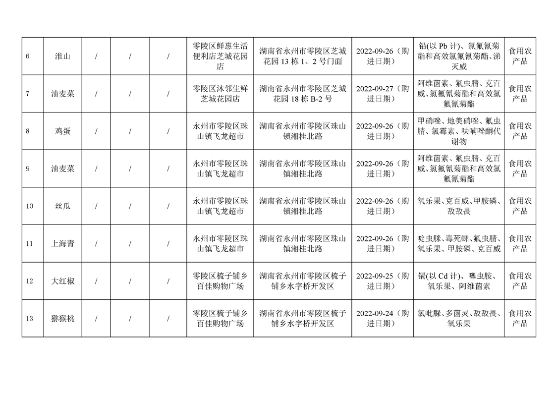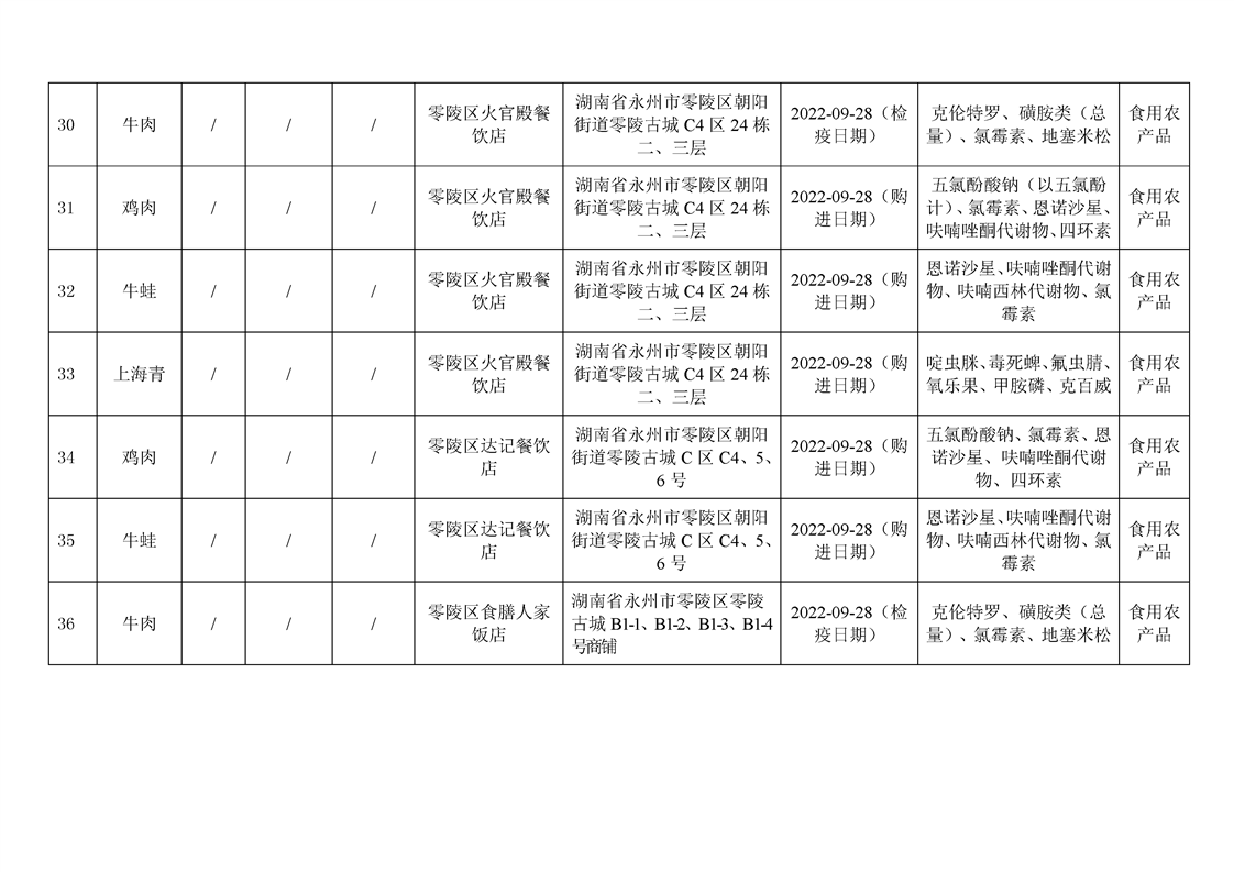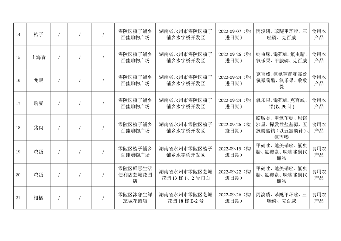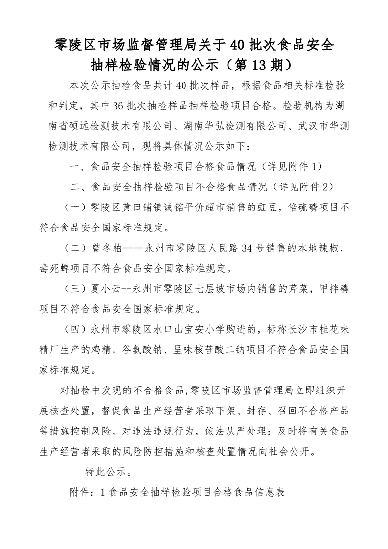零陵区市场监督管理局关于40批次食品安全抽样检验情况的公示(第13期)