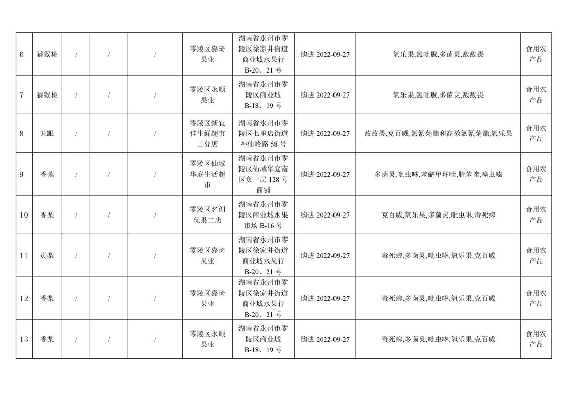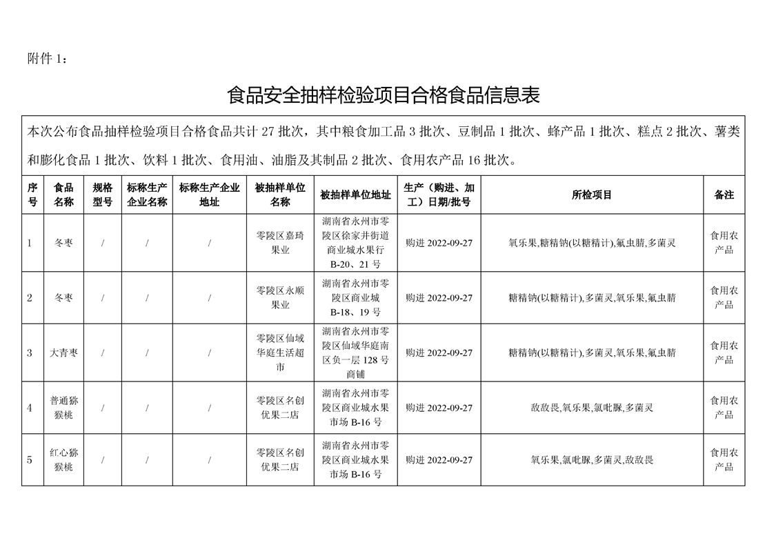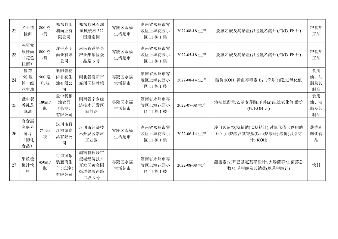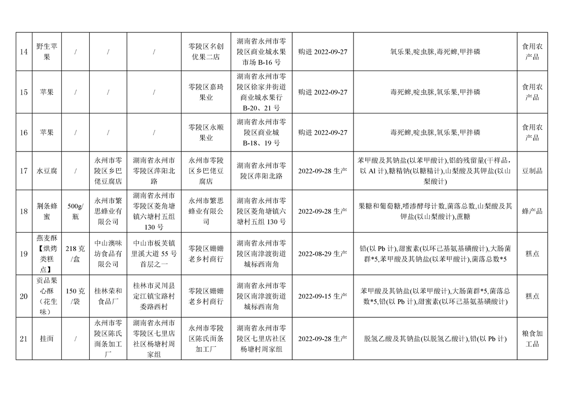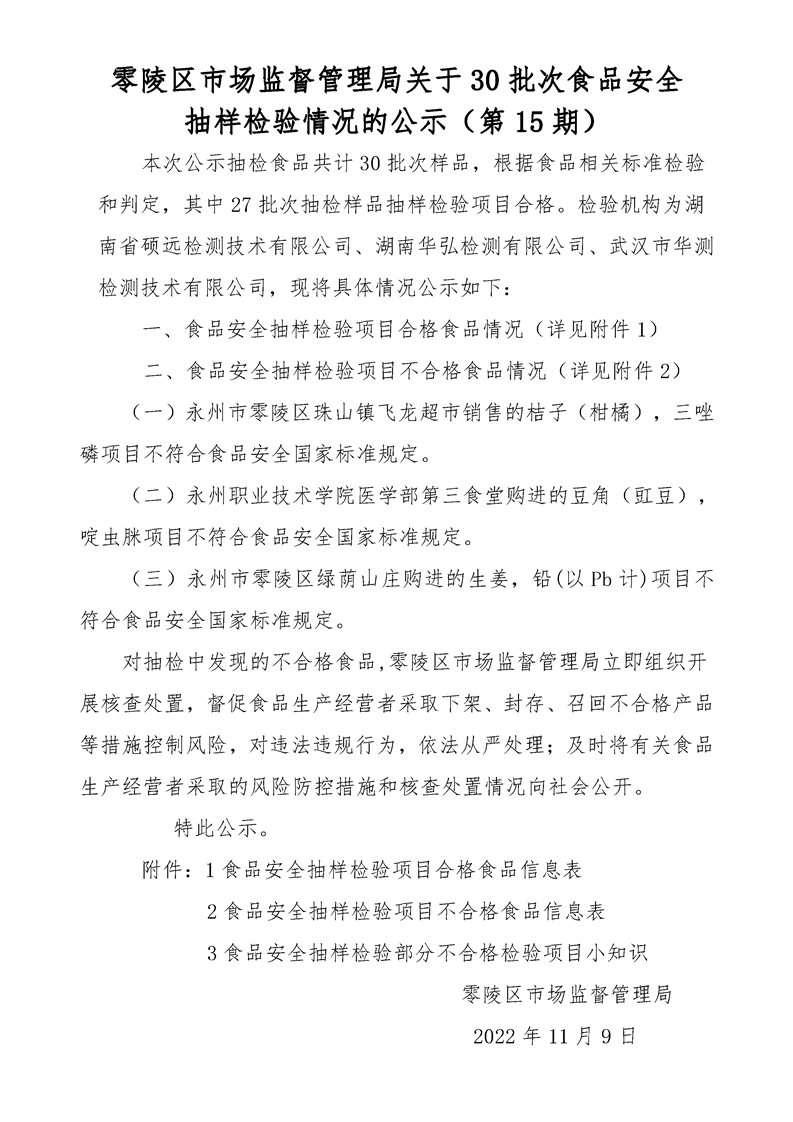 零陵区市场监督管理局关于30批次食品安全抽样检验情况的公示(第15期)
