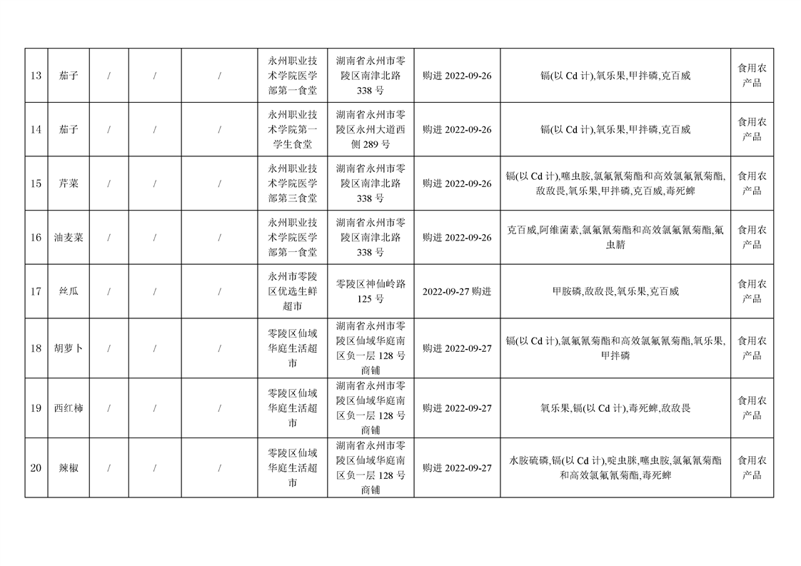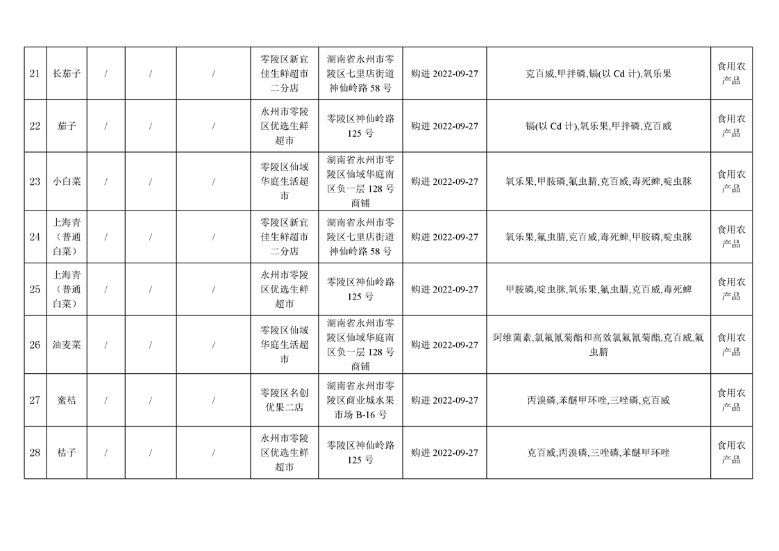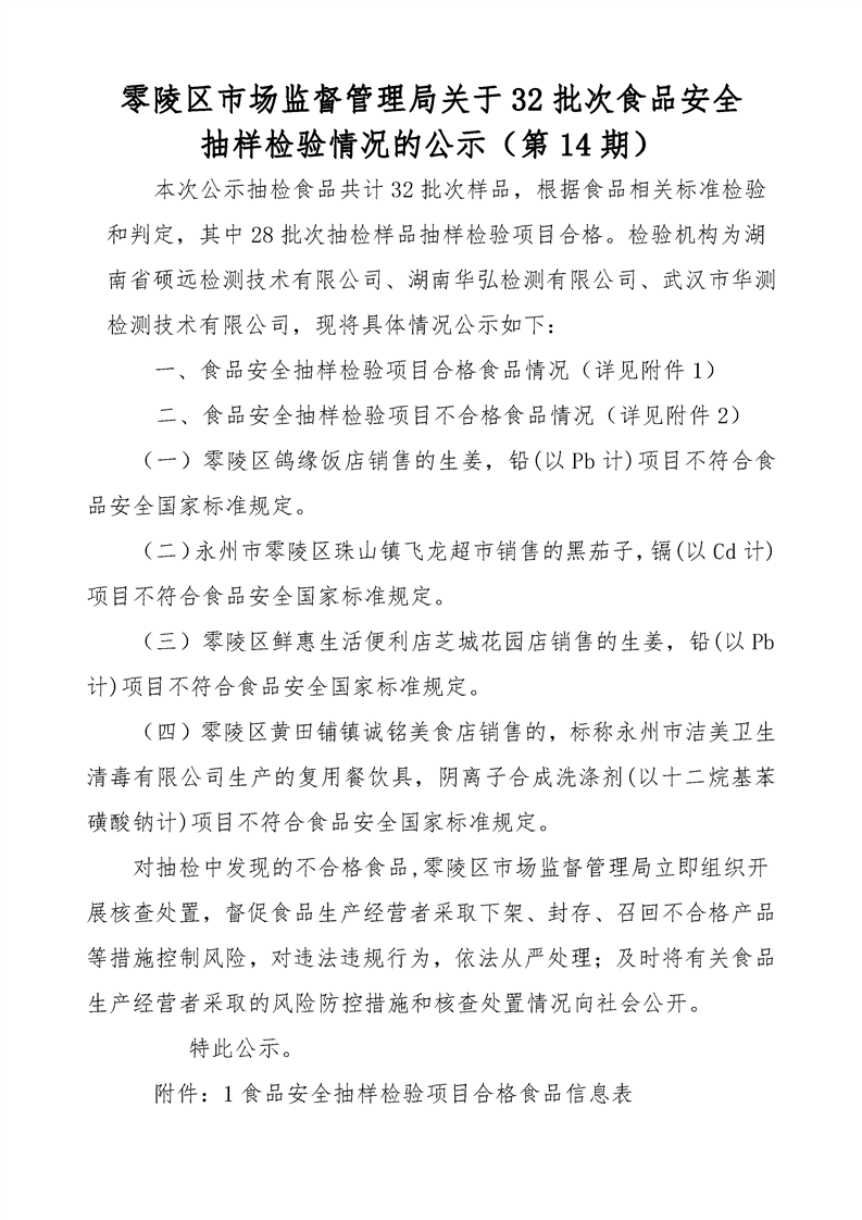零陵区市场监督管理局关于32批次食品安全抽样检验情况的公示(第14期)