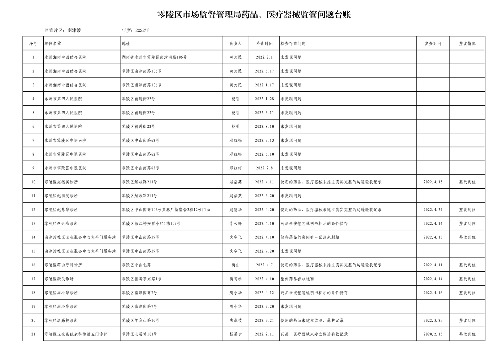 零陵区市场监督管理局药品、医疗器械监管问题台账(2)