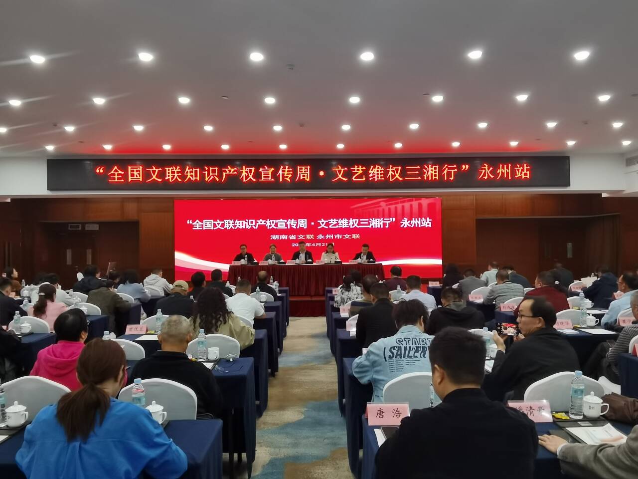 今日永州讯(全媒体记者 杨中瑜)4月21日,2026年湖南省文联“全国文联知识产权宣传周·文艺维权三湘行”巡回宣讲活动走进永州。永州市直各文艺家协会、各县区文联、作协等单位代表及文艺工作者近100人参加活动。