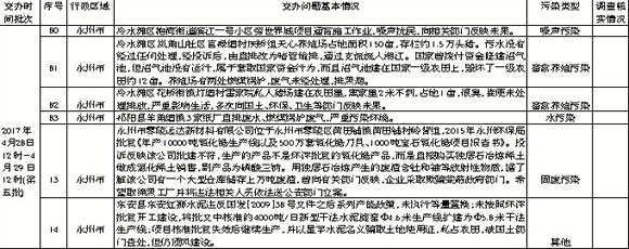 2017年4月29日湖南省配合中央第六环保督察工作协调联络组交办第五批信访案件中,我市信访案件数量6件,截至目前累计共14件。今天交办的信访案件中,按县区分:冷水滩区3件,零陵区1件,祁阳县1件,东安县1件;按污染类型分:噪声污染1件,畜禽养殖污染2件,其它污染1件,水污染1件,固废污染1件,具体情况见下表。