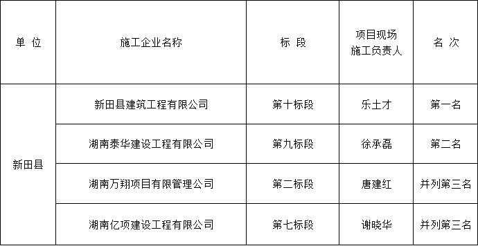 新田县2016年度农业综合开发土地治理项目工程建设优良施工企业和项目现场施工负责人名单表