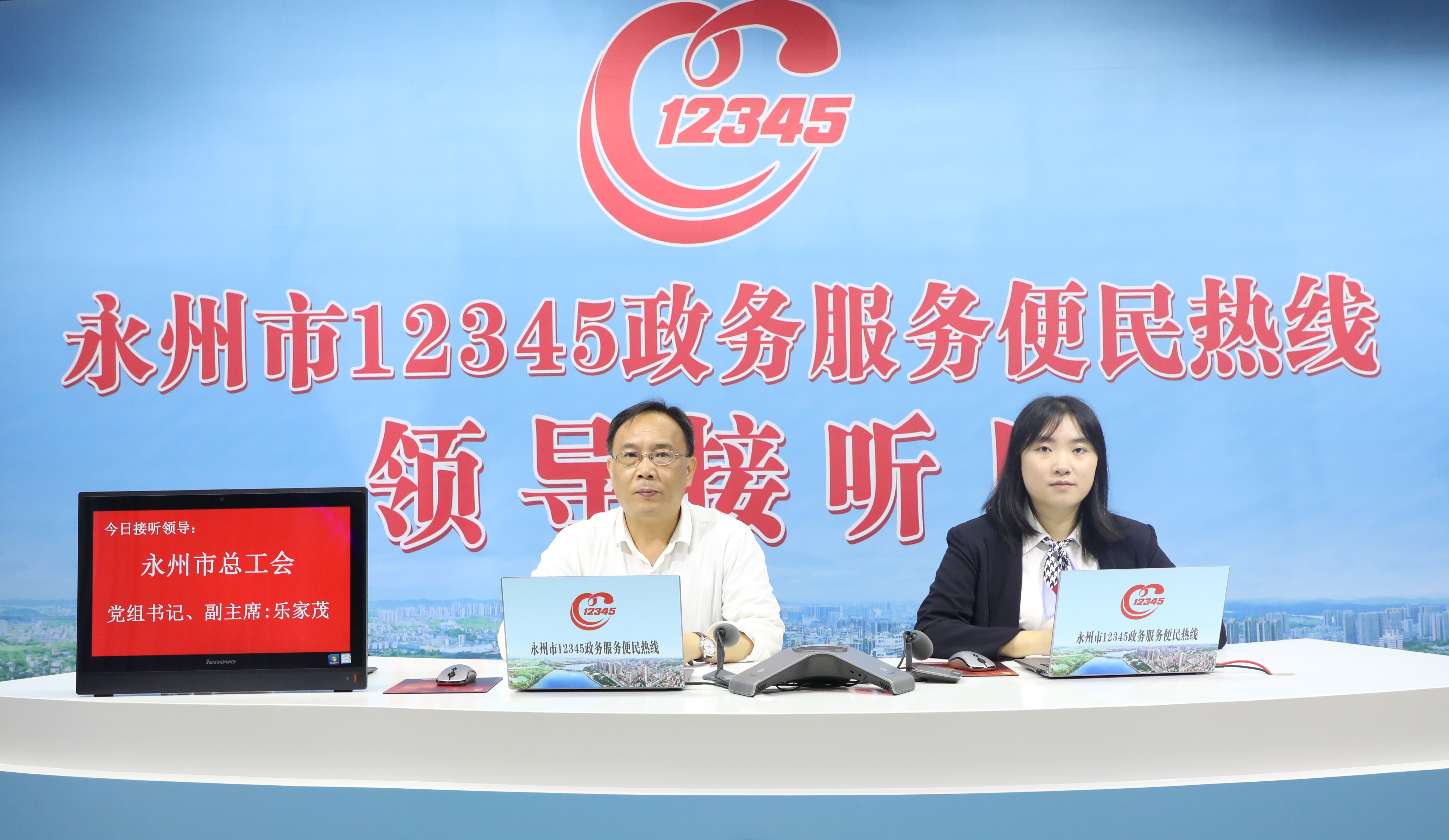 【主持人】市民,您好! 欢迎您参加12345政务服务便民热线“领导接听日”活动,今日接听您电话的领导是永州市总工会党组书记、副主席乐家茂,下面有请乐家茂书记与您进行直接通话。