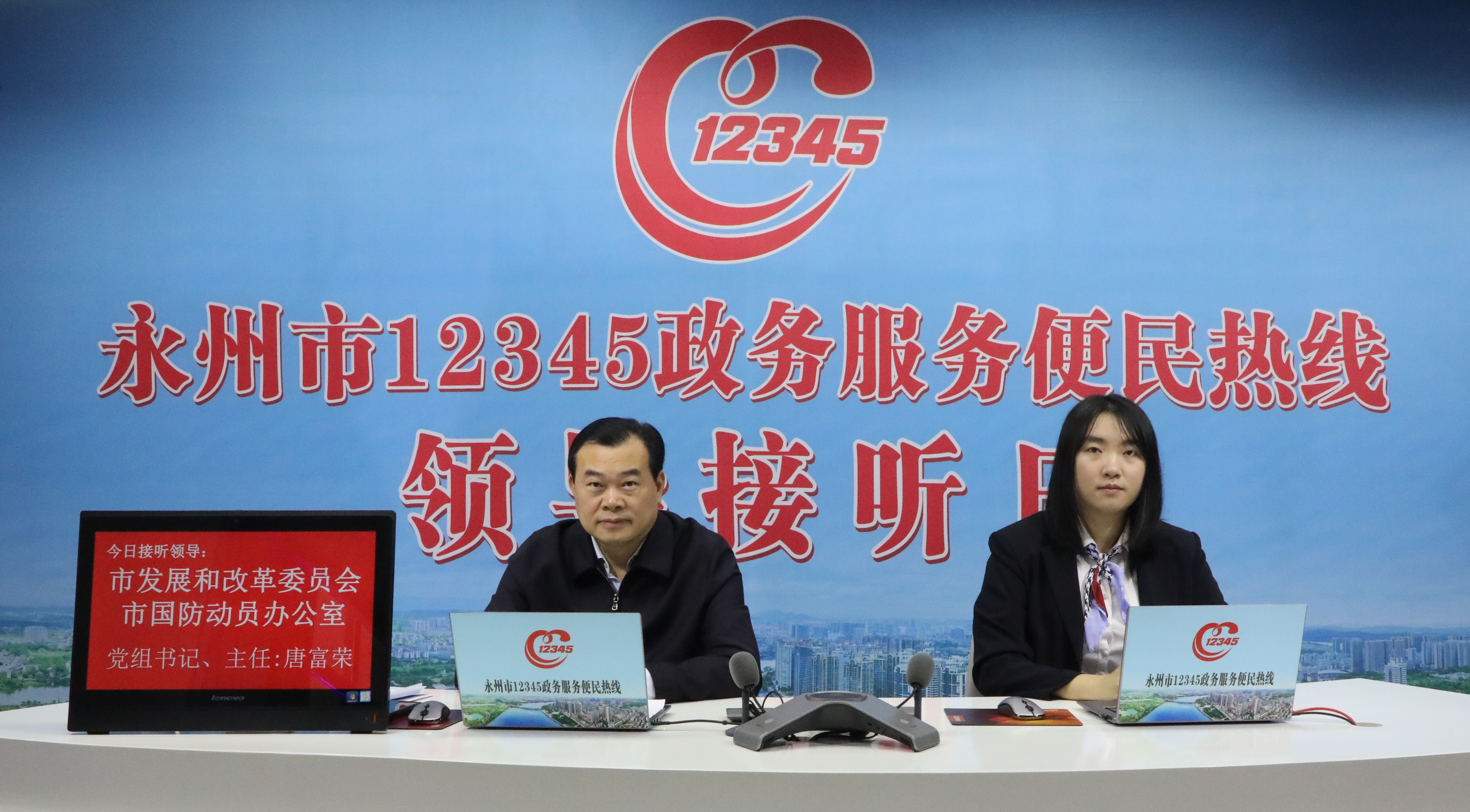 【主持人】市民,您好!欢迎您参加12345政务服务便民热线“领导接听日”活动,今日接听您电话的领导是永州市发展和改革委员会、永州市国防动员办公室(永州市人民防空办公室)党组书记、主任唐富荣,下面有请唐主任与您进行直接通话。
