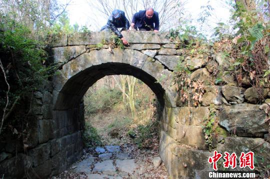 中新网永州3月7日电 (通讯员 唐小晴 杨万里) 文物专家日前在湖南永州零陵区大庆坪乡夫江仔村发现两座明代石拱桥、一条古官道和三块修路修桥的功德石碑。