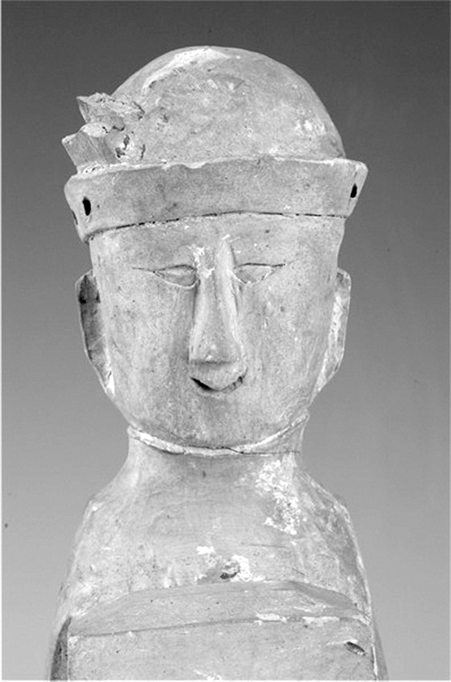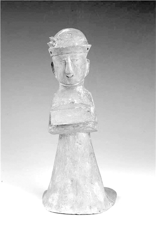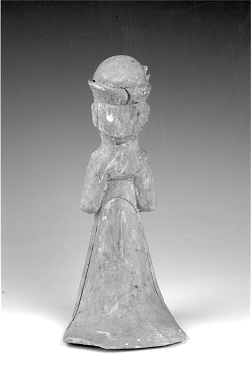 西汉执箱陶女立俑局部图