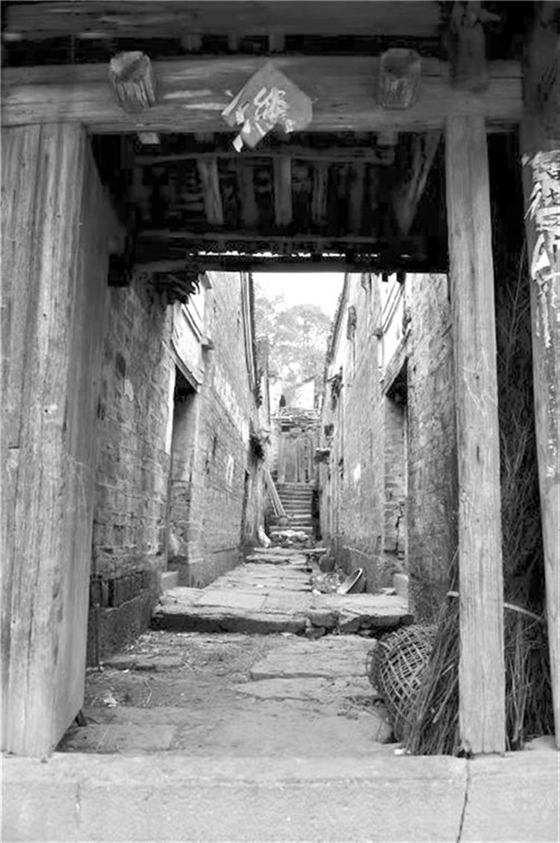 为何一改江南建筑风格而采用城堡形式呢?村里老人介绍,大庆坪地处山地,历来是土匪活动猖獗的地方。为了保护村民财产,采用既适合居住又可以防范土匪的模式建筑,白天务农,晚上防匪。进村的道口,并没有修建气派的门楼,而是一条巷道,在巷道两旁各设一个旗杆石,在我们寻访的永州很多古村中,旗杆石上都表明有“末年某月某某人所立”象征身份荣耀的字样,而这里的旗杆石并没有留下任何痕迹,足可见主人并没有显赫的官位。