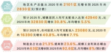 工业“撑腰杆”,挺起经济硬脊梁。预计全市地区生产总值从2020年的2101亿元增长到2025年的2830亿元。