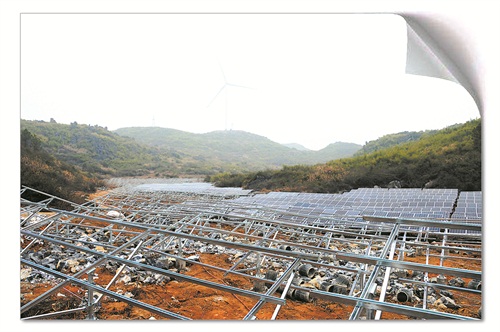 1月23日,正在江华瑶族自治县涔天河镇鹧鸪坝村建设中的全省最大光伏扶贫电站——鹧鸪坝光伏电站C区的光伏发电板反射面已安装过半,初具雏形。鹧鸪坝光伏扶贫发电站是江华3×100MW光伏产业扶贫项目建设的第一个点,计划总装机容量10MW,总投资7200万元,年发电收入900万元以上。黎实 摄