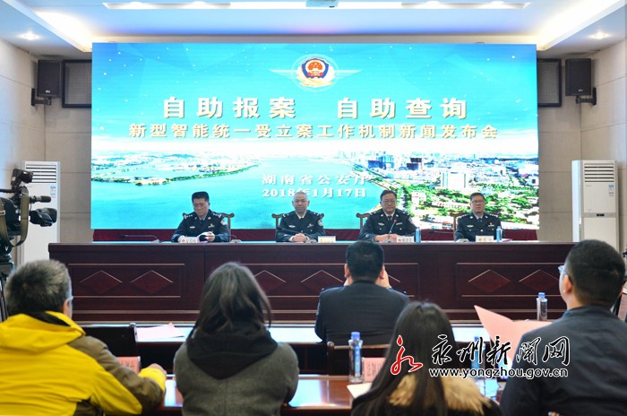 1月17日,湖南省公安厅在永州市公安局召开新闻发布会,推介永州公安推出的新型智能统一受立案工作机制。