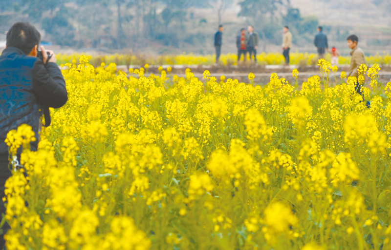 2月9日,道县柑子园镇,油菜花盛开,阵阵花香沁人心脾。随着气温的逐渐回暖,道县种植的油菜已进入开花期,呈现一派生机勃勃的早春景象。湖南日报记者 李健 通讯员 何红福摄影报道