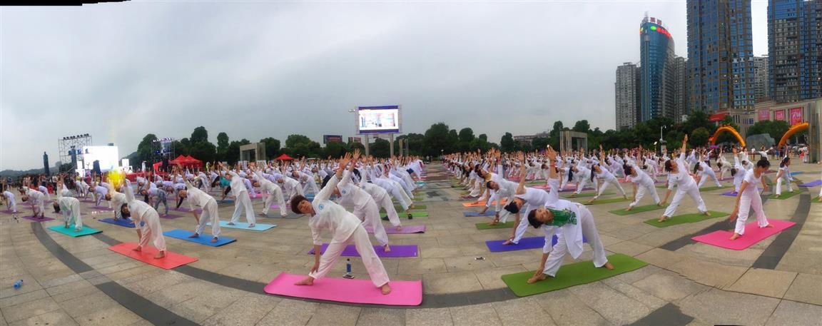永州新闻网讯(记者 杨永玲)2018年6月21日是第四个国际瑜伽日,21日下午,由市文体广新局主办、市瑜伽协会承办的永州市第二届千人瑜伽交流会在冷水滩区滨江广场举行,近千名瑜伽爱好者参加。