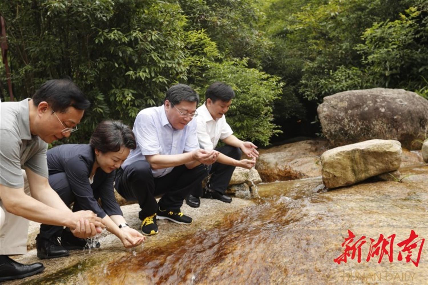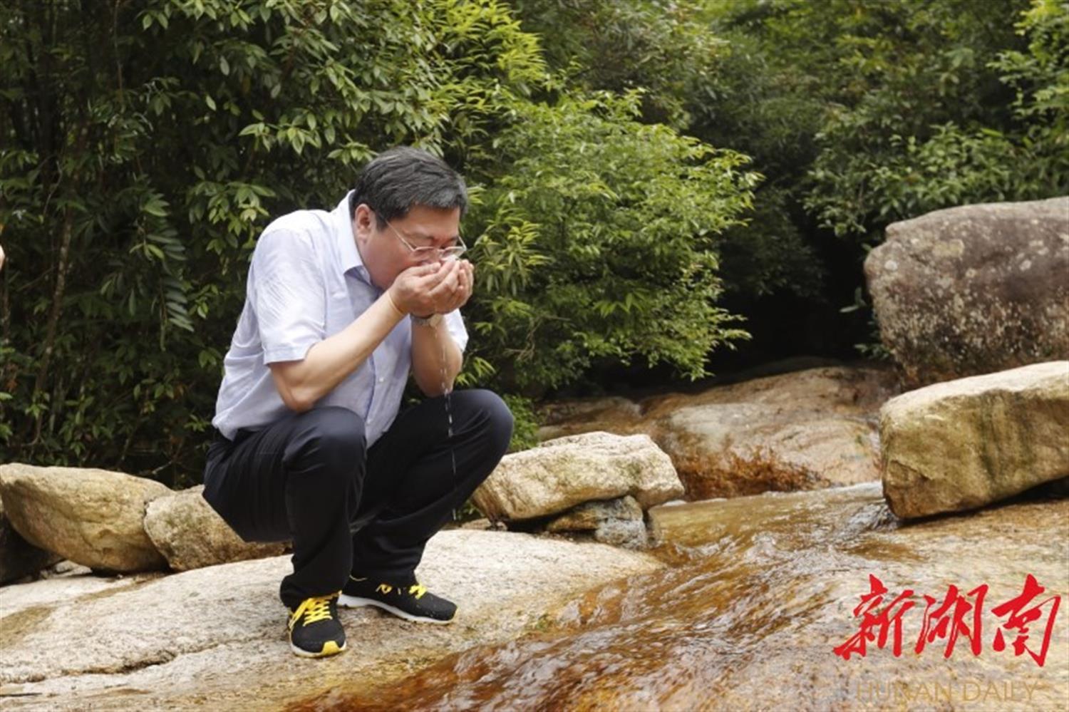 湖南日报新湖南客户端6月29日讯(文/贺佳 图/罗新国)6月28日至29日,省委书记杜家毫在永州市调研。今天上午,杜家毫来到蓝山县湖南湘江源国家森林公园境内的野狗岭,实地考察湘江源头生态环境保护情况。在幽长的峡谷中徒步近半小时后,杜家毫走近山涧小溪,俯下身子,双手捧起清冽甘甜的源头活水,仔细察看水质色泽,一连喝下三大口。杜家毫叮嘱当地负责同志,保护湘江首先要保护好源头。要始终牢记习近平总书记的殷殷嘱托,坚决守护好一江碧水。