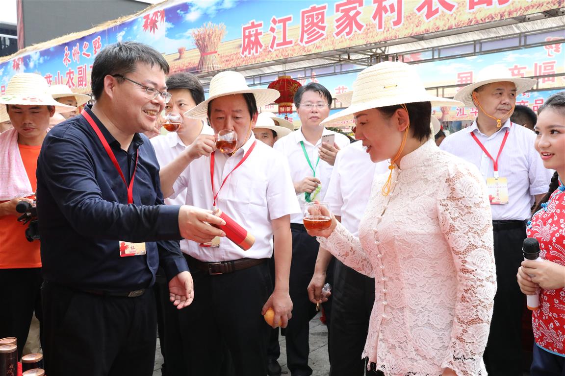 永州新闻网讯(记者 唐敏 欧宇馨)9月21日,由永州市委、市政府主办的永州首届“中国农民丰收节”在双牌县麻江镇廖家村开幕。市委书记、市人大常委会主任李晖敲响丰收锣,宣布永州首届“中国农民丰收节”开幕。市委副书记、市长赵应云致辞,市委副书记、政法委书记何录春主持开幕式。