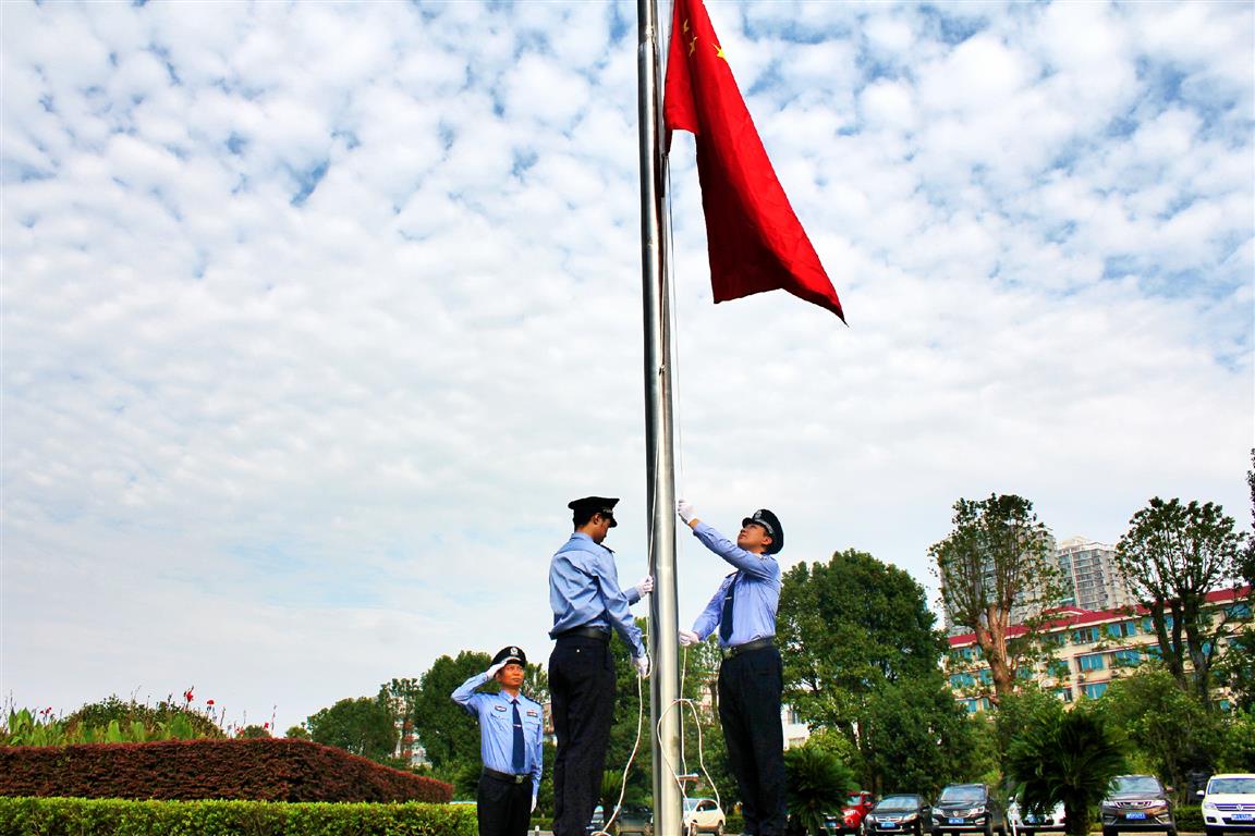 国旗与朝阳齐升,国运共天地长隆。上午9时整,武警国旗护卫队迈着整齐有力的步伐,护送着国旗行进至升旗台上。在雄壮的国歌声中,机关干部们神情庄重,面向国旗肃然而立,凝视鲜艳的五星红旗冉冉升起,衷心祝愿祖国更加繁荣昌盛,祝愿人民生活更加幸福美好。