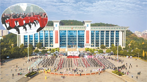 11月30日上午,东安县第三届武术文化旅游周暨创建全国禁毒示范城市武术比赛开赛,千名干部群众汇聚县城和谐文化广场,同台竞技,以武会友,一招一式尽显东安德武精神。作为全国首批武术之乡的东安,近年来,以文化旅游推动武术文化产业化,积极开展“武术六进”活动,大力推行武术段位制,全县习武之风盛行,武术普及率达70%。严洁 唐鸿岸 摄