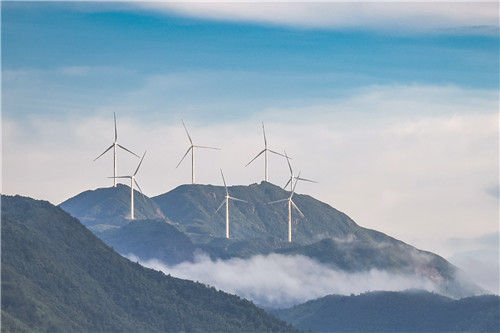 7月20日,蓝山县所城镇长铺风电场,风电机组矗立在青山之巅,与蓝天白云相映成景,美如画卷。近年来,该县坚持绿色发展理念,利用高山风力资源优势,大力发展绿色清洁能源,实现经济发展与生态保护双赢。 彭华 摄