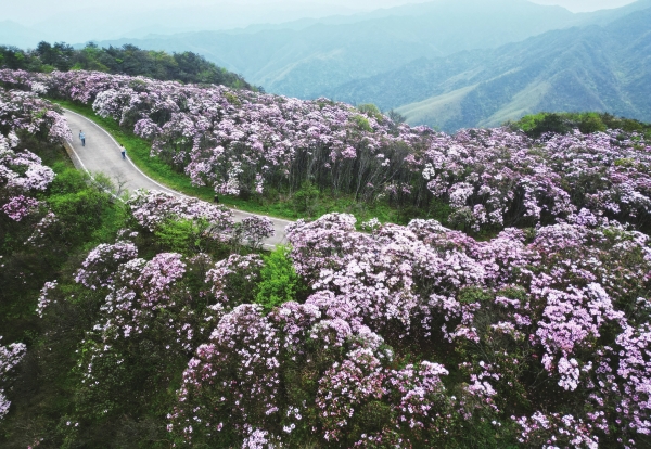 4月25日,双牌阳明山国家森林公园内近10万亩野生杜鹃竞相盛放,漫山遍野,美如画卷。 唐建海 摄