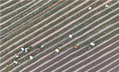 7月14日,江永县潇浦镇锦堂美村,村民在抢种紫心红薯苗。该县采取“合作社+农户+基地”模式,因地制宜种植紫心红薯、香芋南瓜、百合等特色农作物6万多亩,订单销往粤港澳大湾区,有效促进农业增效、农民增收。 田如瑞 摄
