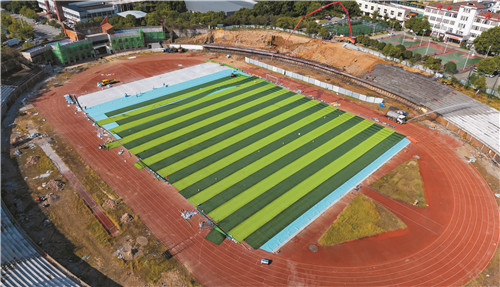 8月28日,永州市体育场全面提质改造工程正在火热进行。为迎接即将开幕的 “湘超”联赛(湖南省足球超级联赛),永州市体育场作为永州赛区的主赛场,工人们正顶着烈日加紧施工,全力推进草坪铺设和观众席建设等工程。此次改造聚焦赛事专业化需求,采用高标准草皮和现代化观赛设施,不仅为参赛球员提供更优质的竞赛环境,同时也为市民观众创造更舒适的观赛体验。 永州日报全媒体记者 文佳星 摄