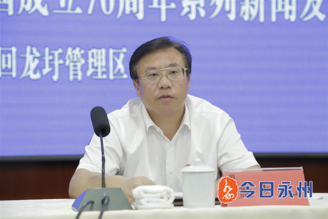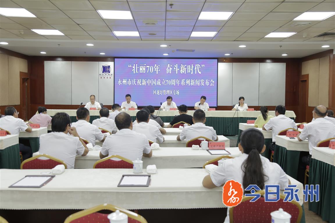 永州新闻网讯(记者 彭丽霞 谢思佳)9月19日上午,永州市“壮丽70年 奋斗新时代”系列新闻发布会举行回龙圩管理区专场,展示回龙圩管理区经济社会发展情况。回龙圩管理区党委书记盘志元发布新闻。回龙圩管理区党委副书记、管委会主任刘功文,副书记成萍,党委委员、宣传部长朱琨分别就管理区弘扬农垦精神、生态环境保护、产业发展、乡村振兴等问题答记者问。