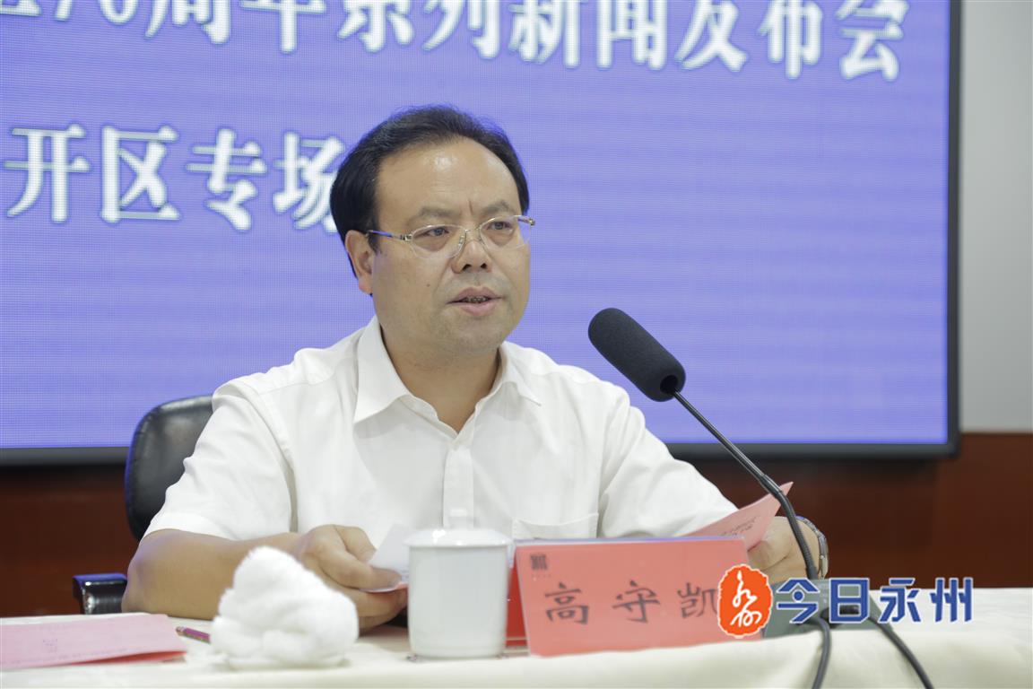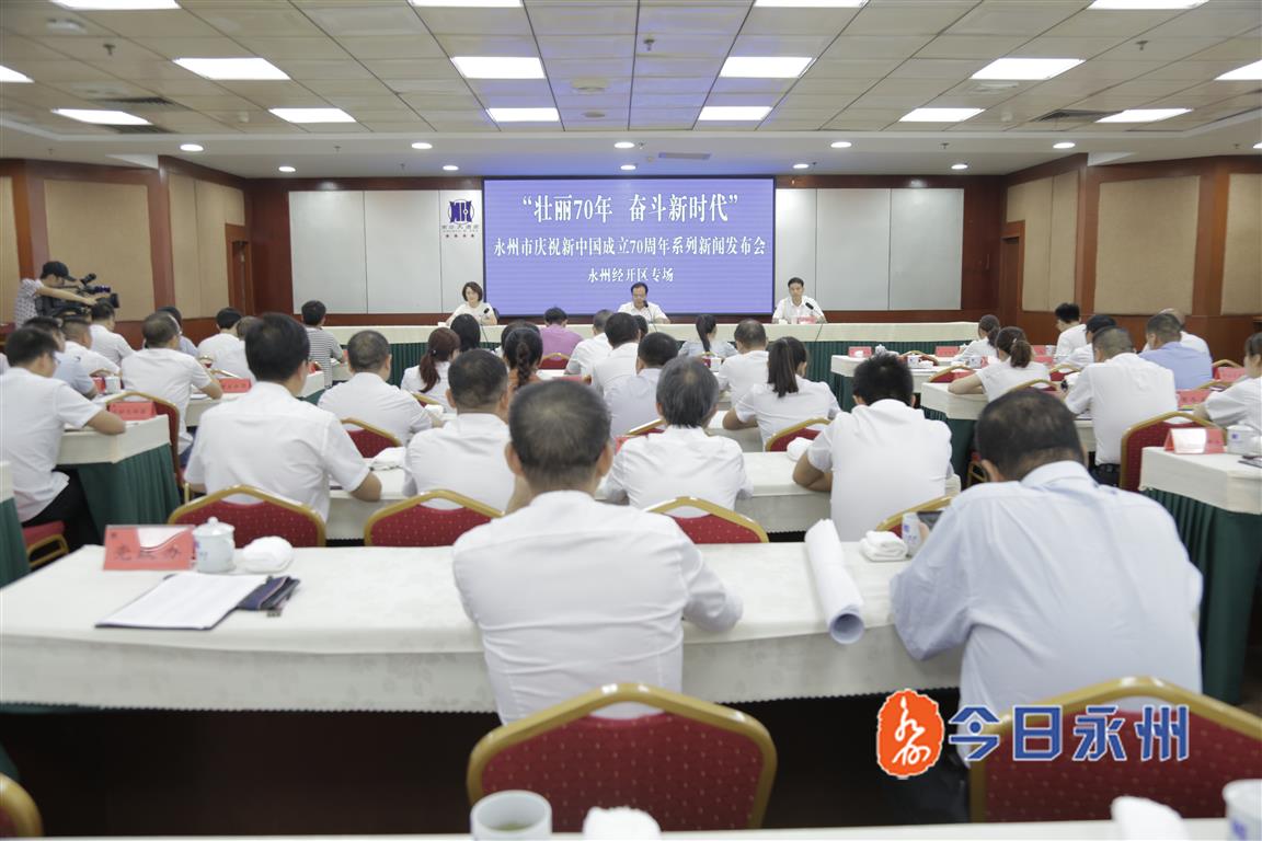 永州新闻网讯(记者 彭丽霞 谢思佳 实习记者 柳聪)9月20日上午,永州市“壮丽70年·奋斗新时代”系列新闻发布会举行永州经开区专场,展示永州经开区经济社会发展情况。永州经开区党委书记高守凯发布新闻,并与党委副书记、管委会主任李瑛就招商引资、园区规划、“135工程”升级版等问题答记者问。