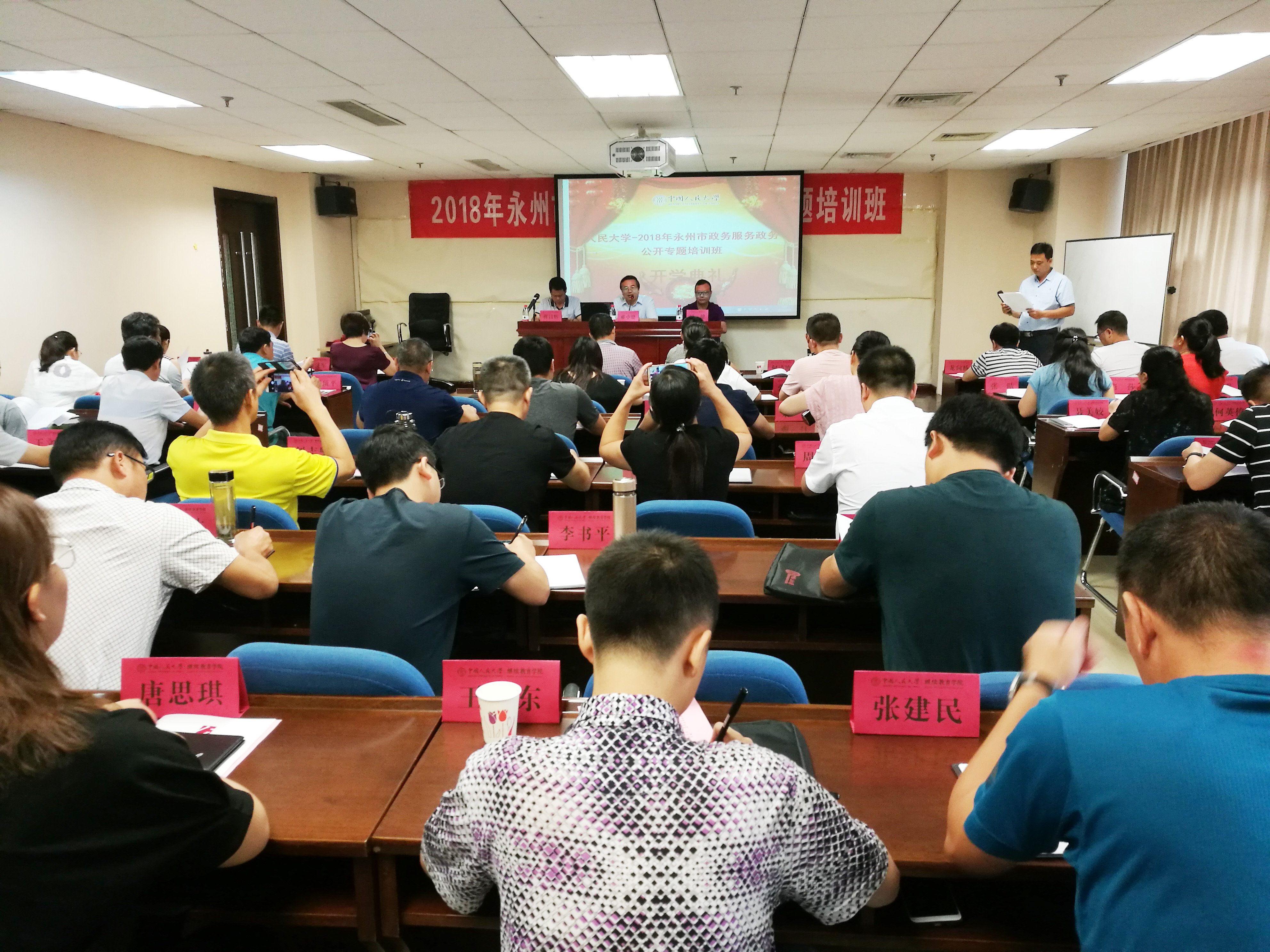 为进一步提升我市政务服务政务公开水平,经报永州市委组织部同意,永州市政务服务政务公开培训班于8月14日在中国人民大学顺利开班。