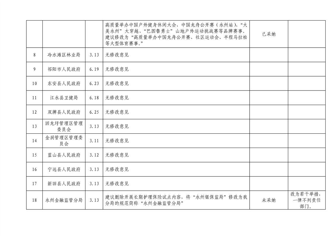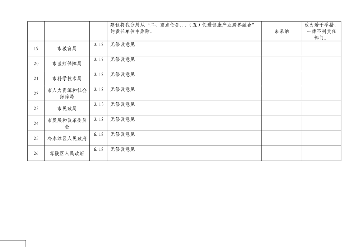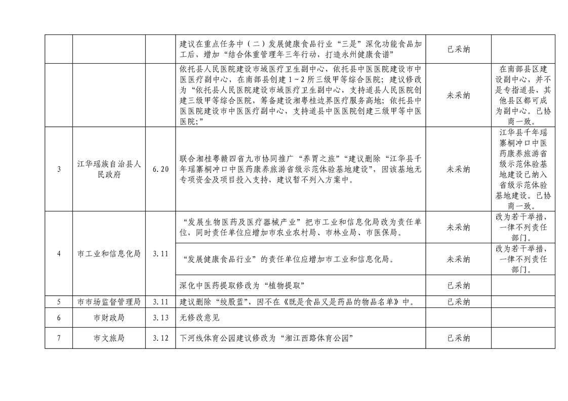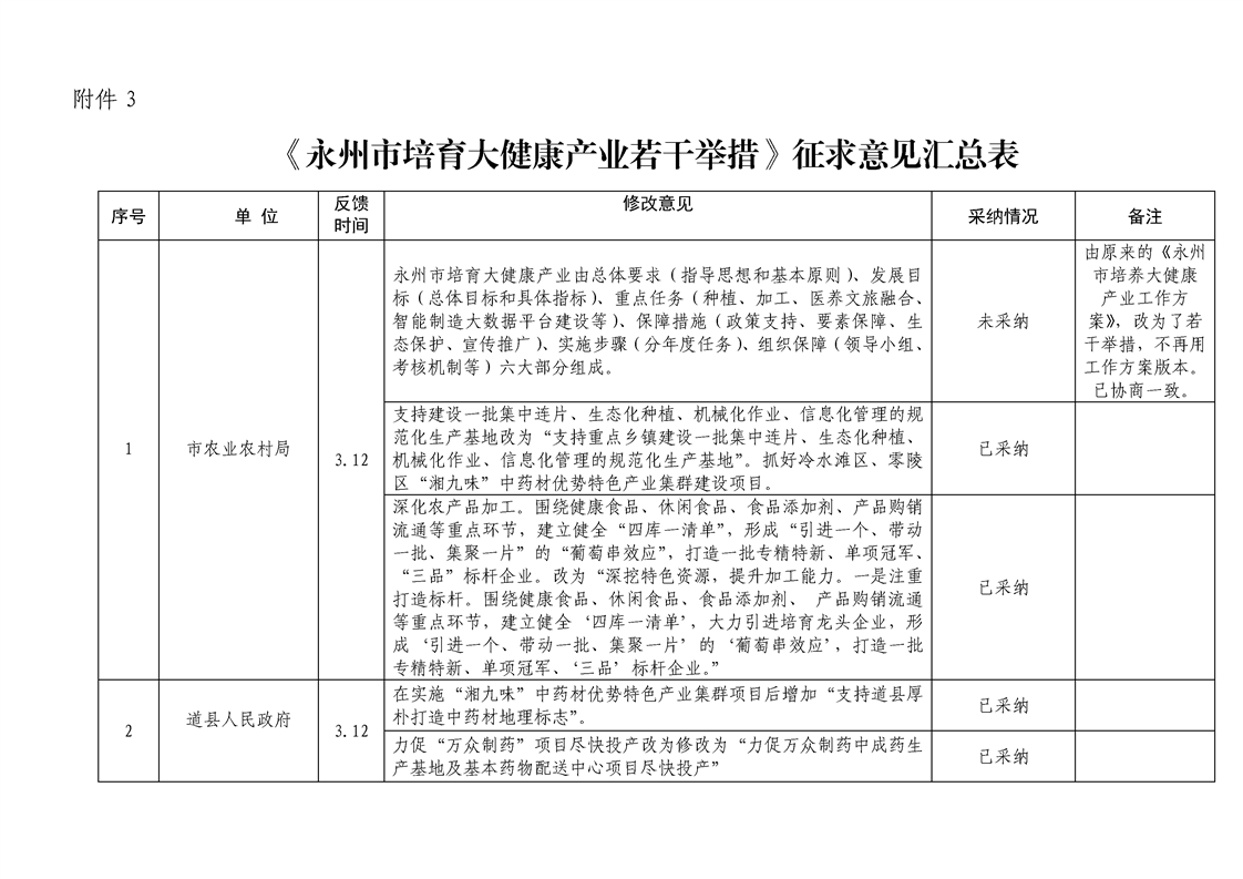 《永州市培育大健康产业若干举措》征求意见汇总表