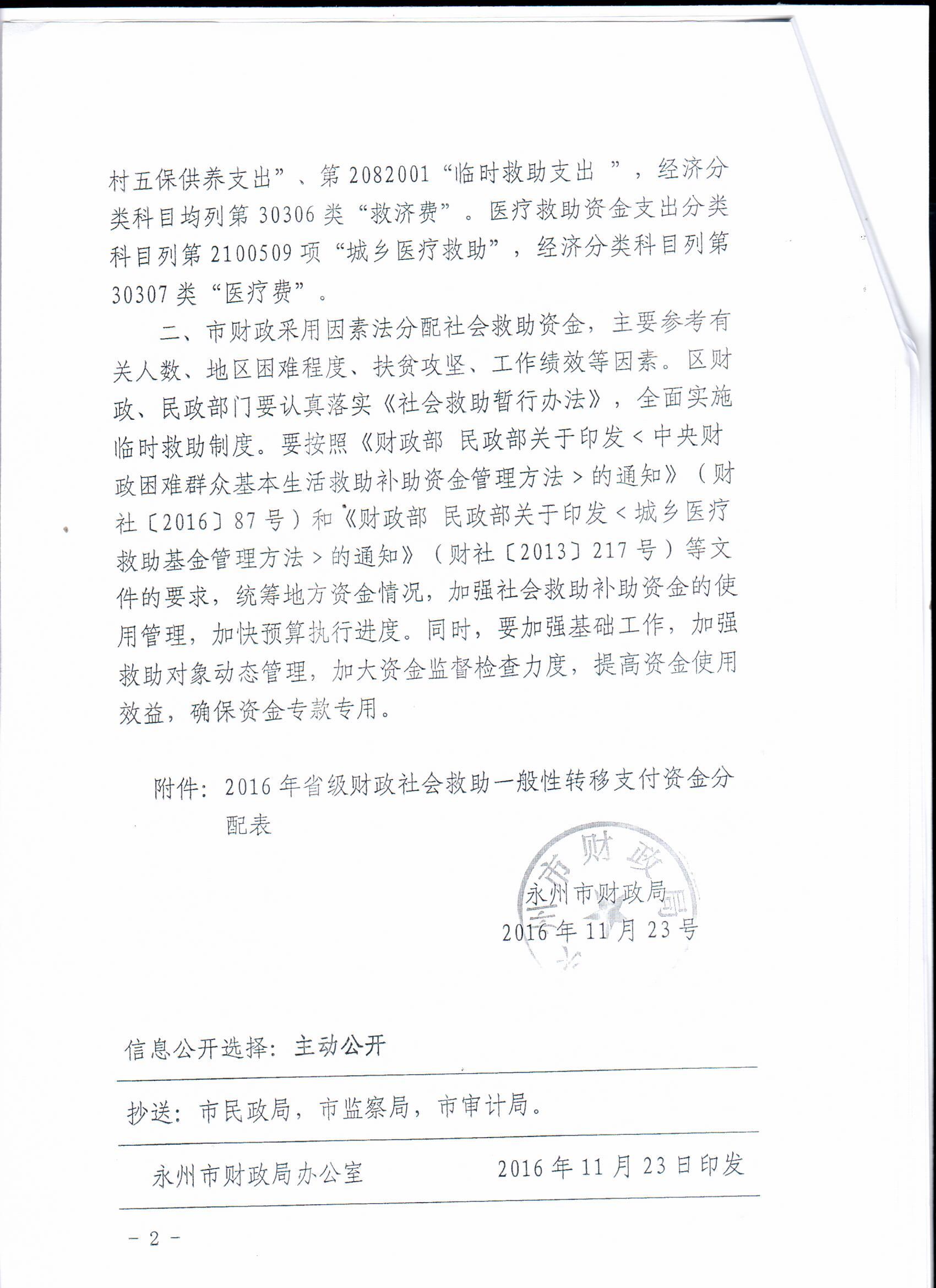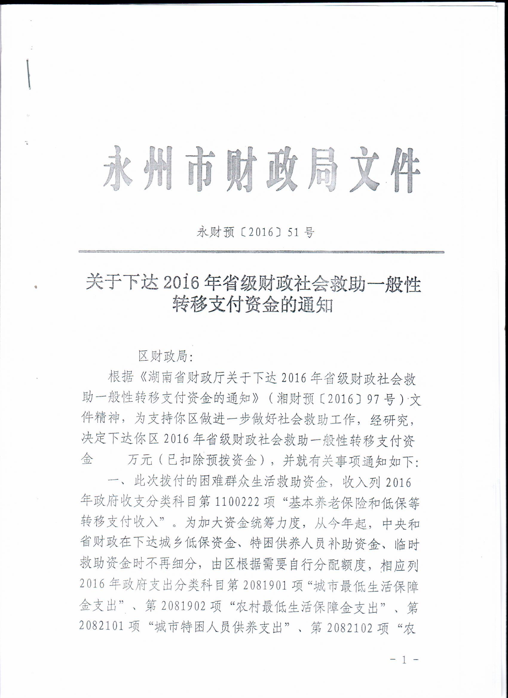 关于下达2016年省级财政社会救助一般性转移支付资金的通知