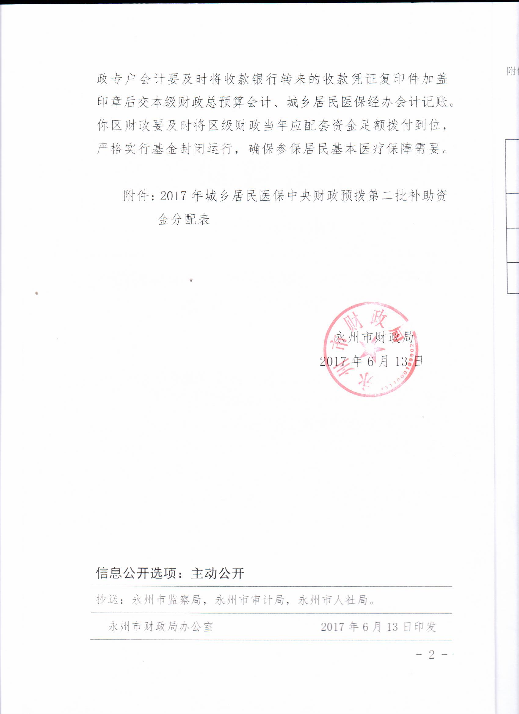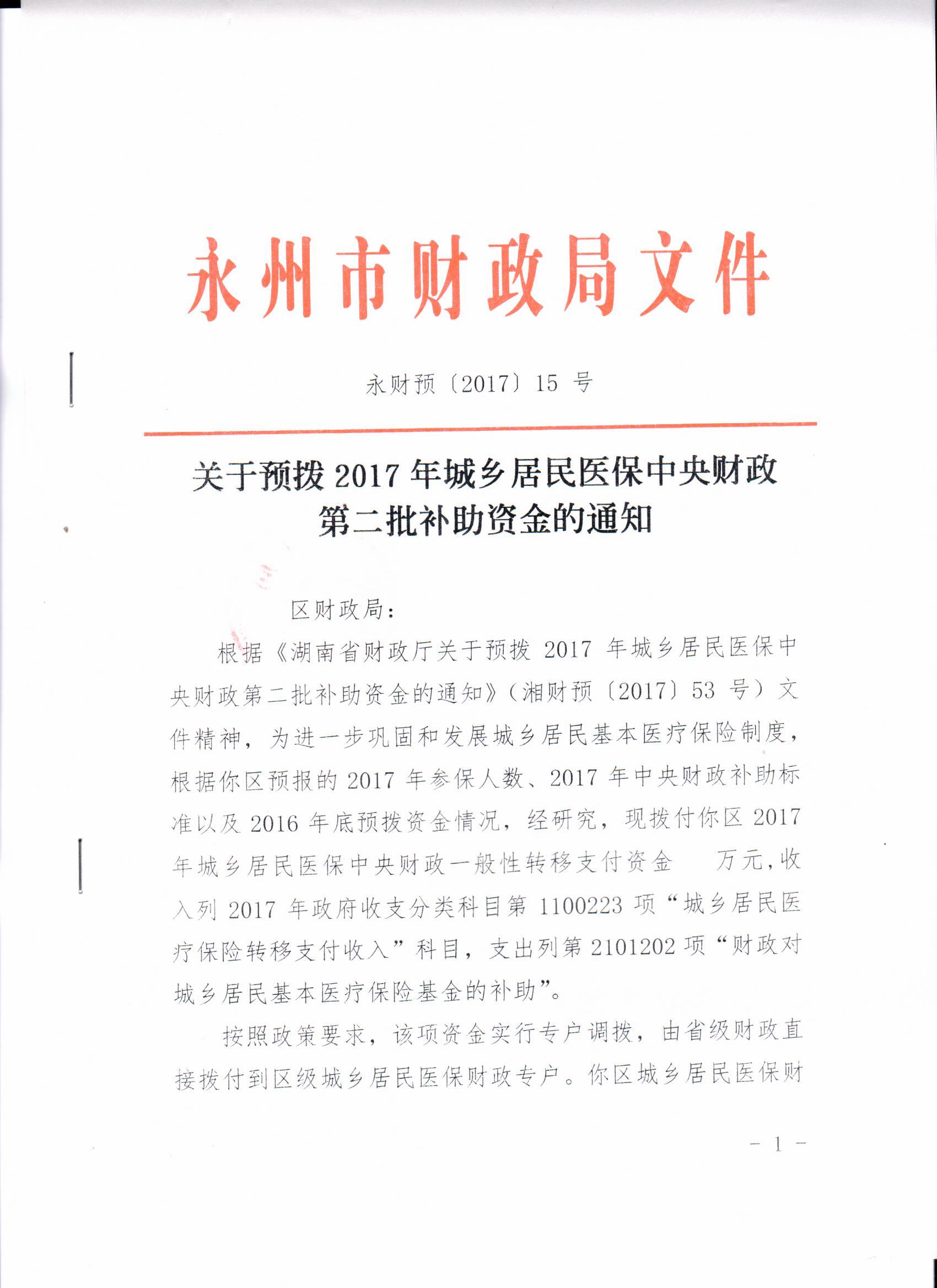 关于预拨2017年城乡居民医保中央财政第二批补助资金的通知