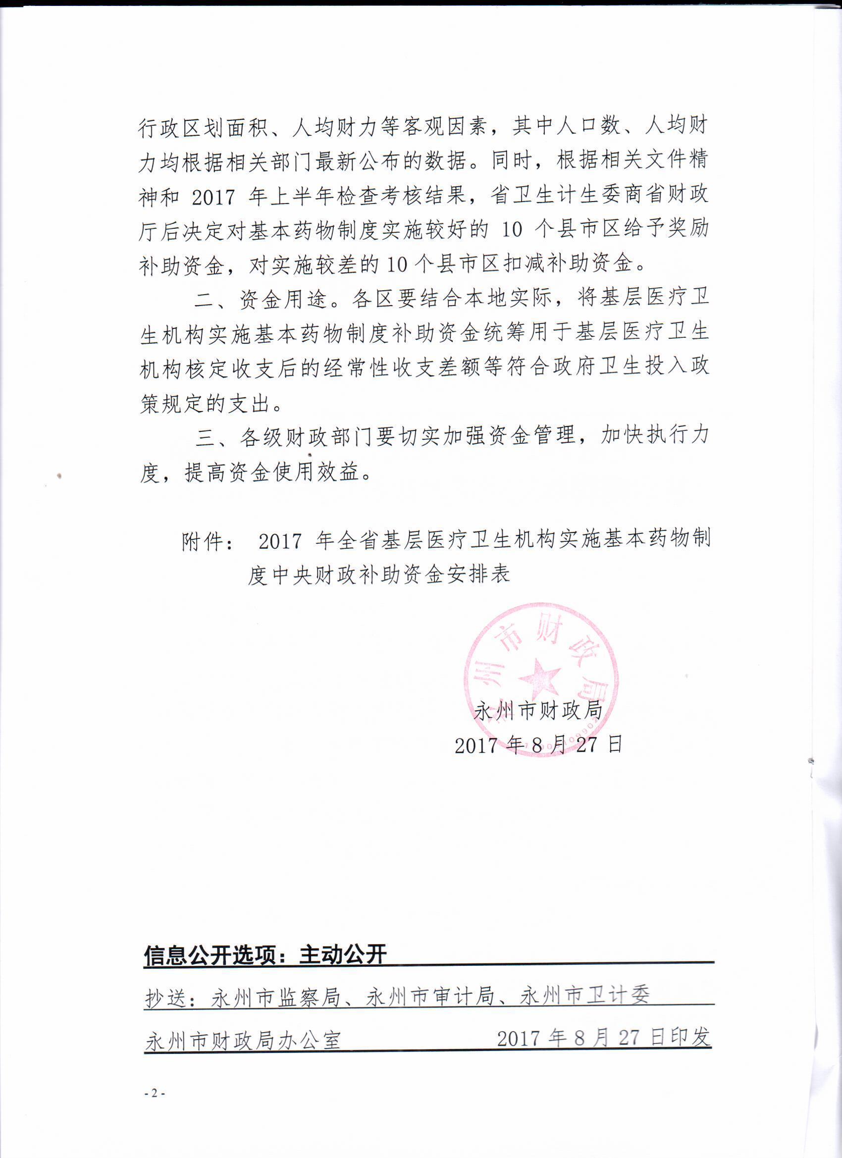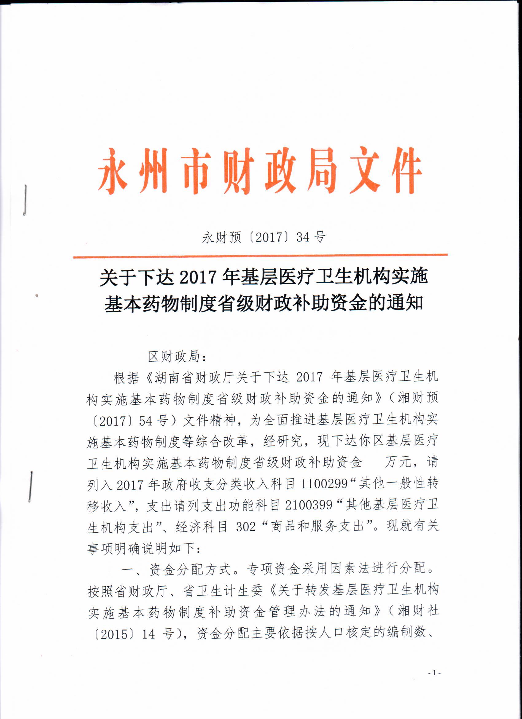关于下达2017年基层医疗卫生机构实施基本药物制度省级财政补助资金的通知
