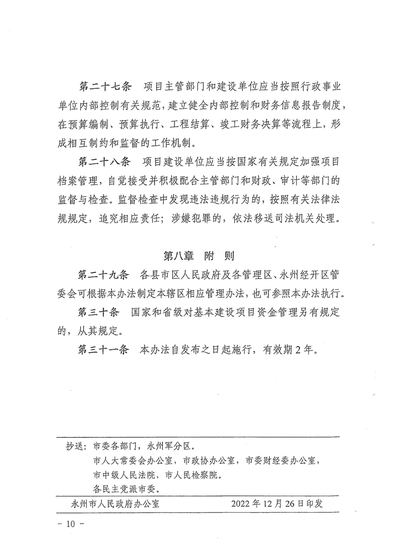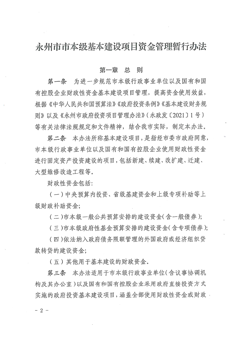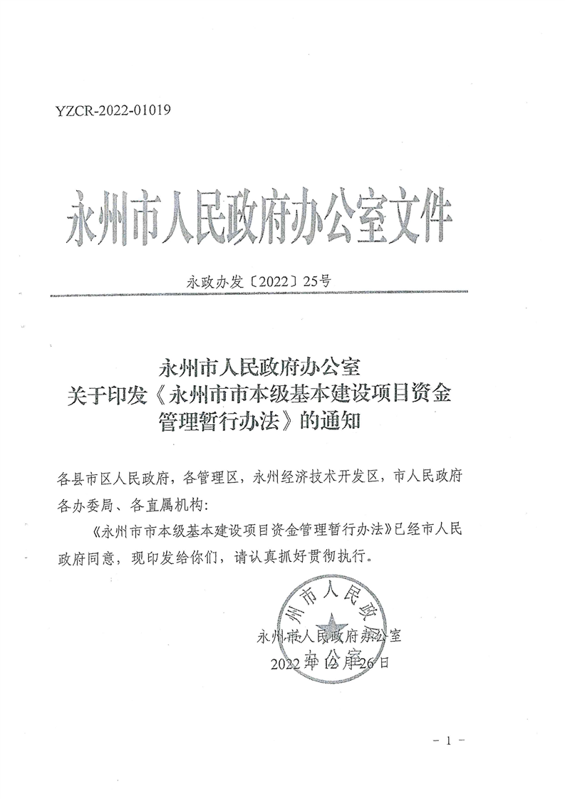 永州市人民政府办公室关于印发《永州市市本级基本建设项目资金管理暂行办法》的通知(永政办发〔2022〕25号)