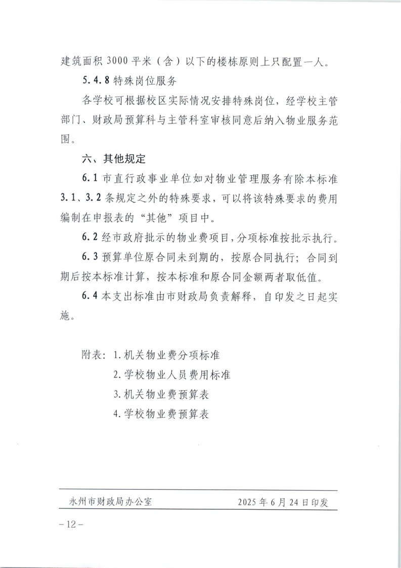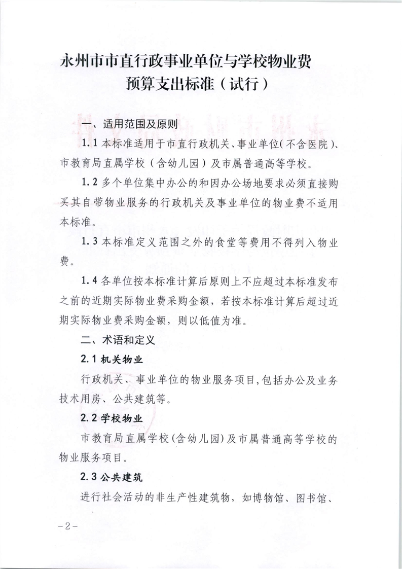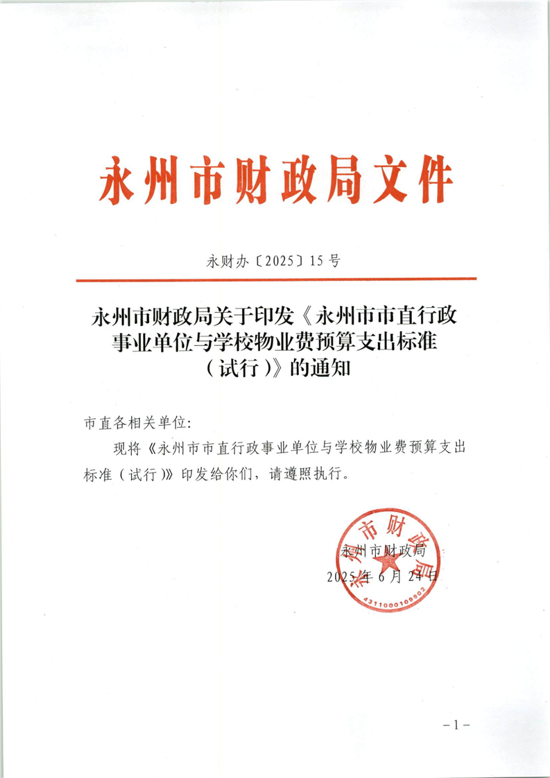 永州市财政局关于印发《永州市市直行政事业单位与学校物业费预算支出标准(试行)》的通知