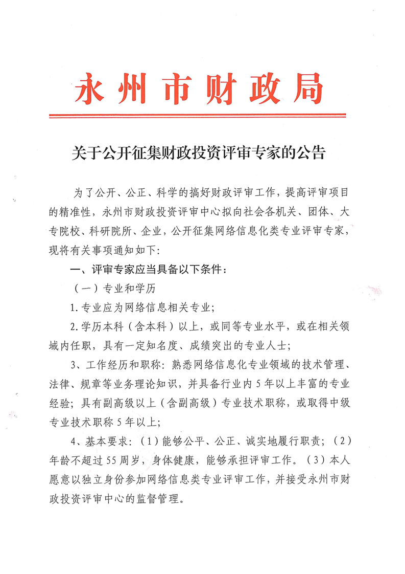 关于公开征集财政投资评审专家的公告