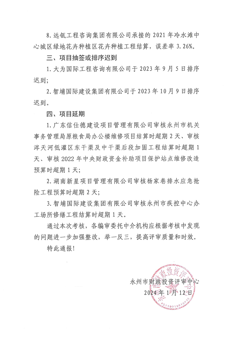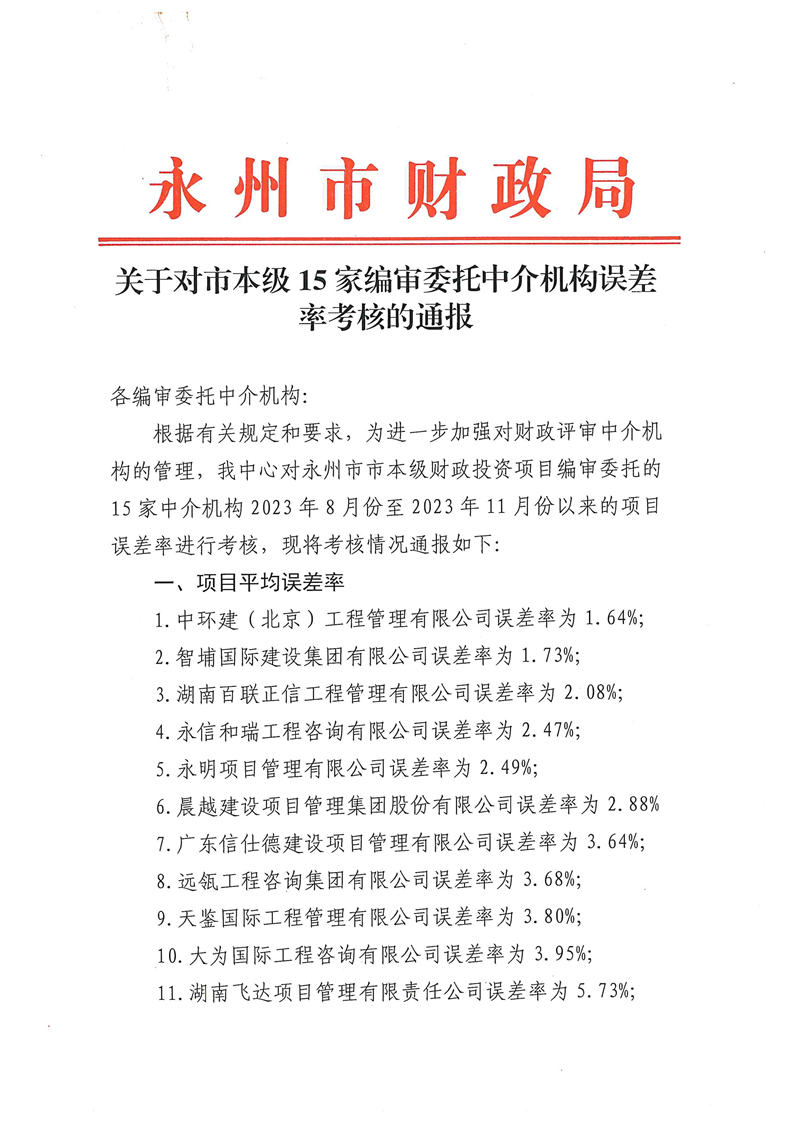 关于对市本级15家编审委托中介机构误差率考核的通报