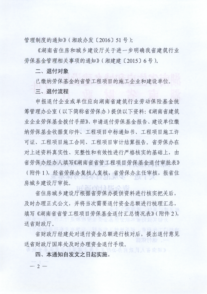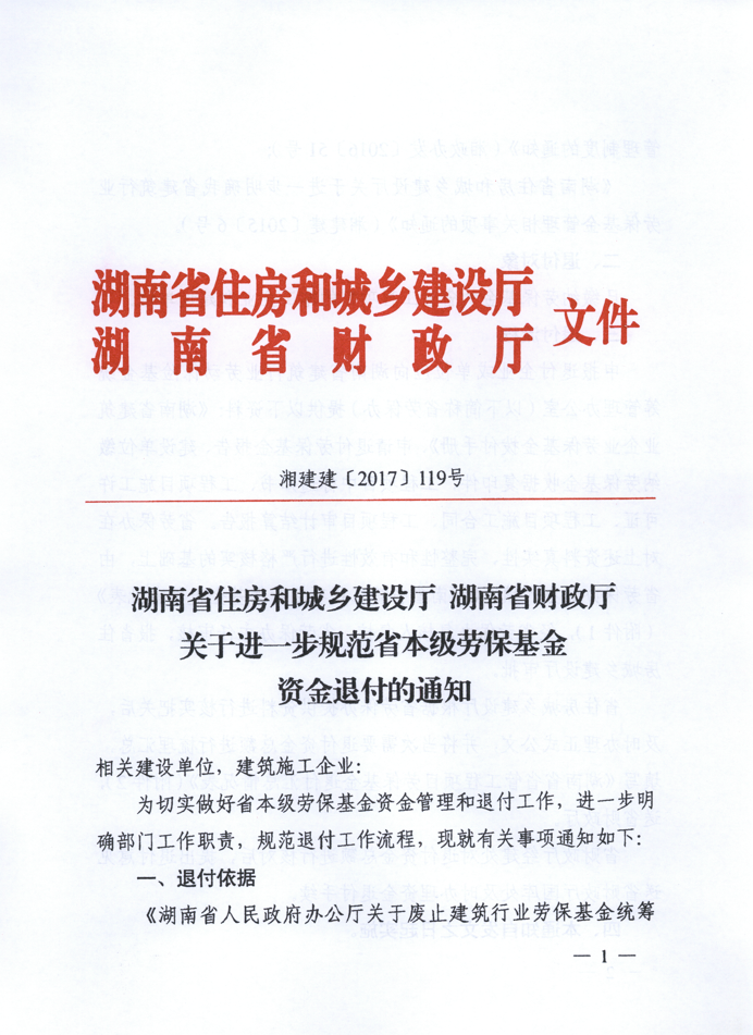 湖南省住房和城乡建设厅 湖南省财政厅关于进一步规范省本级劳保基金资金退付的通知