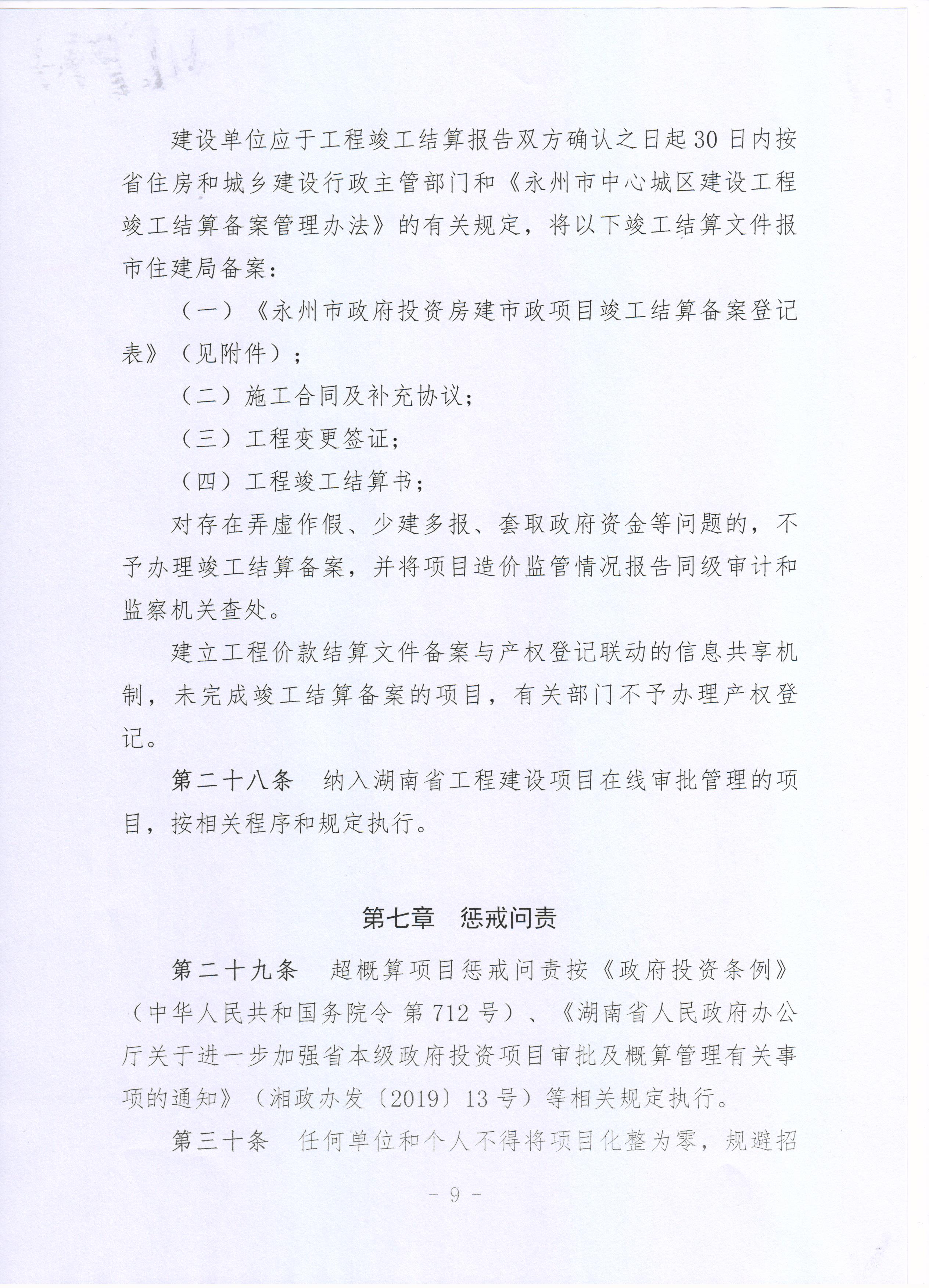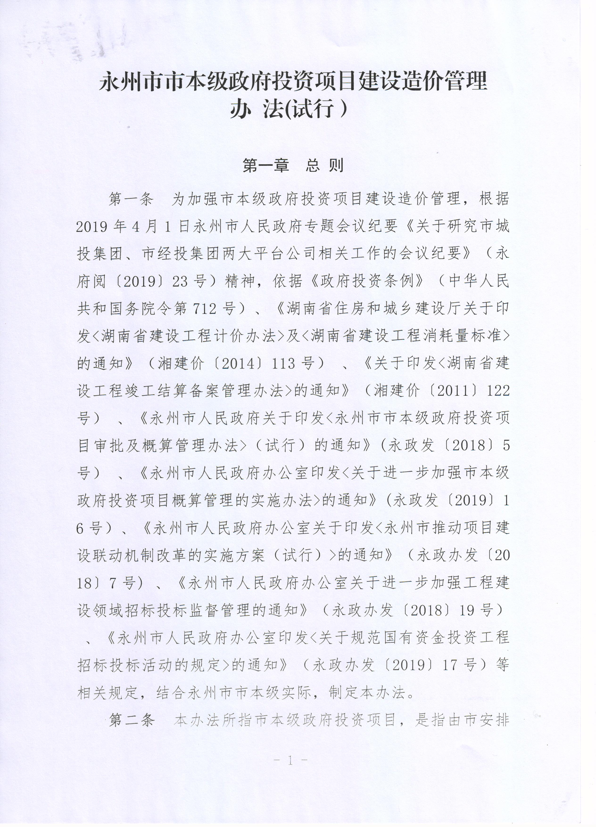 永州市财政局、永州市住房和城乡建设局关于印发《永州市市本级政府投资项目建设造价管理办法(试行)》的通知(永财办[2019]26号)