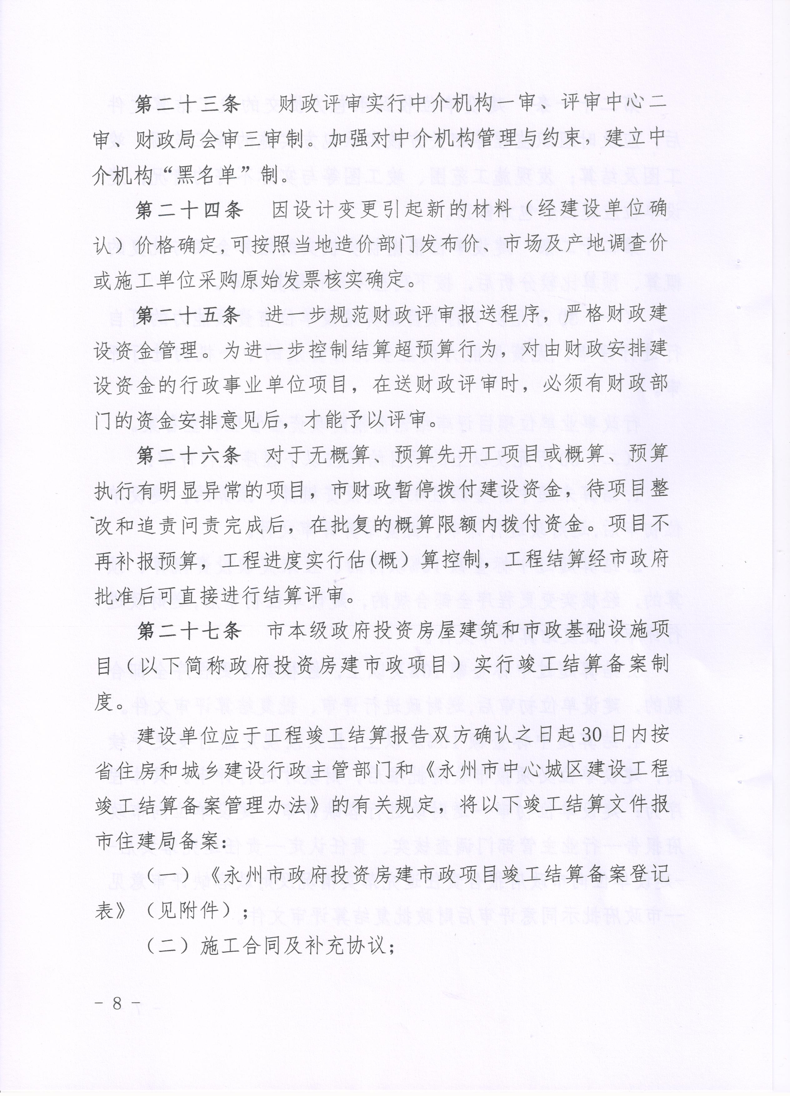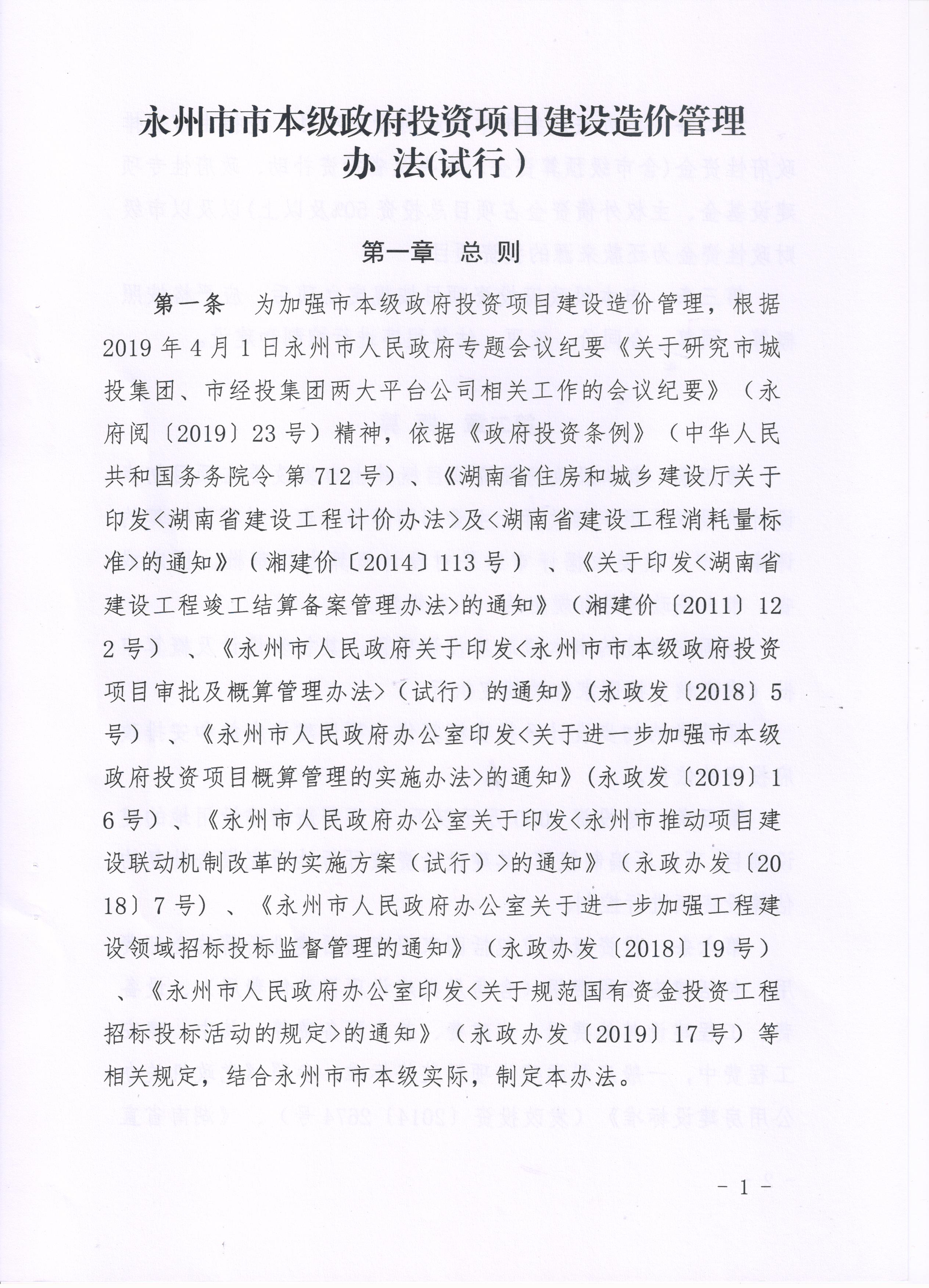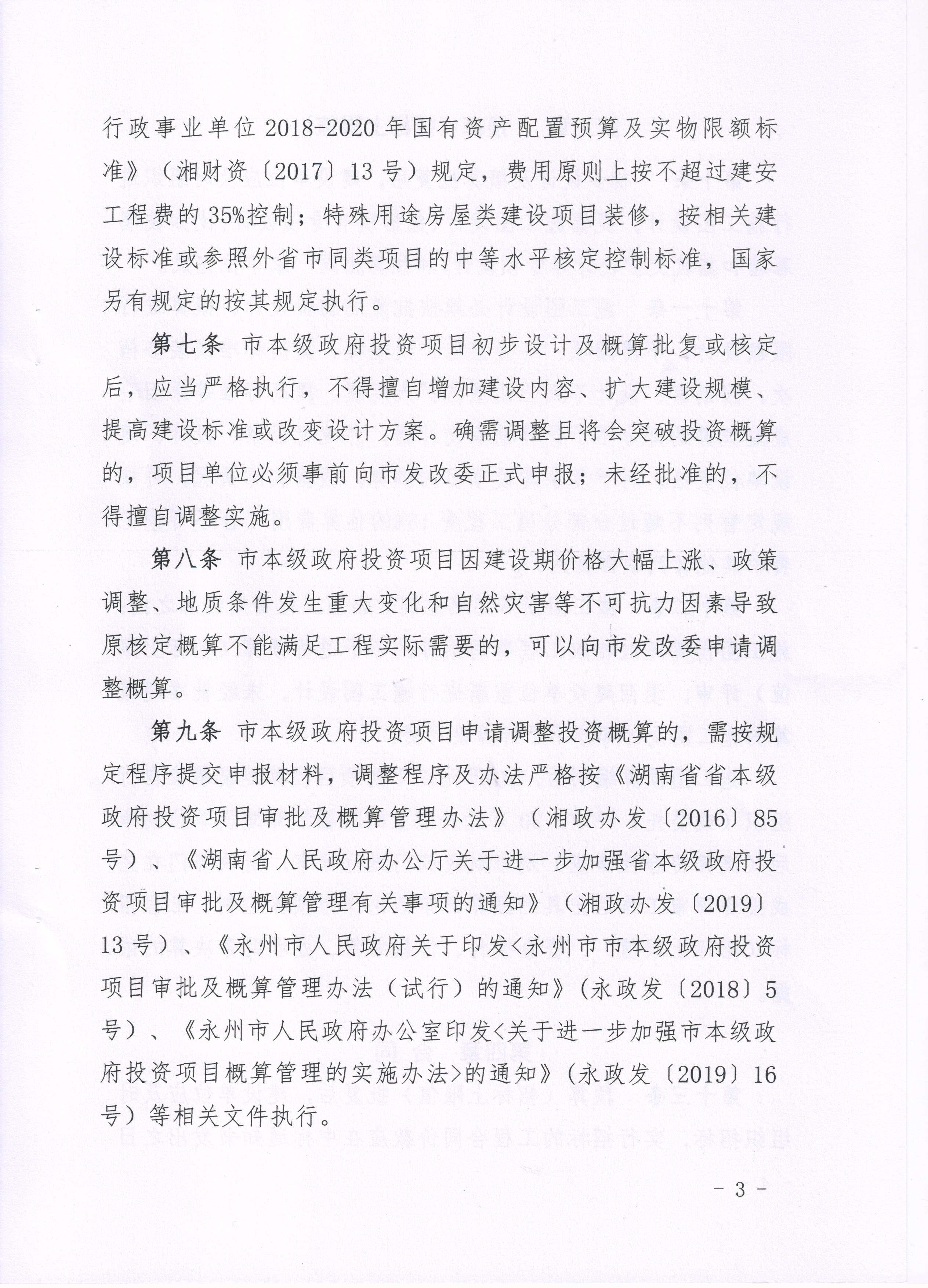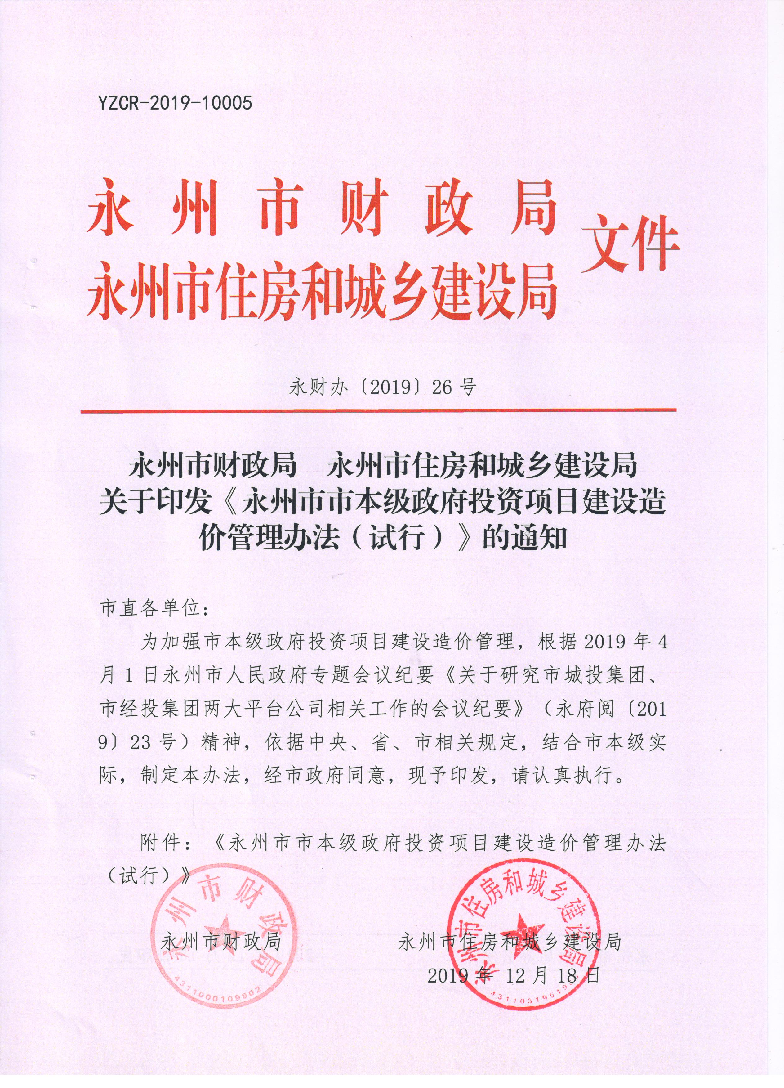 永州市财政局、永州市住房和城乡建设局 关于印发《永州市市本级政府投资项目建设造价管理办法(试行)》的通知