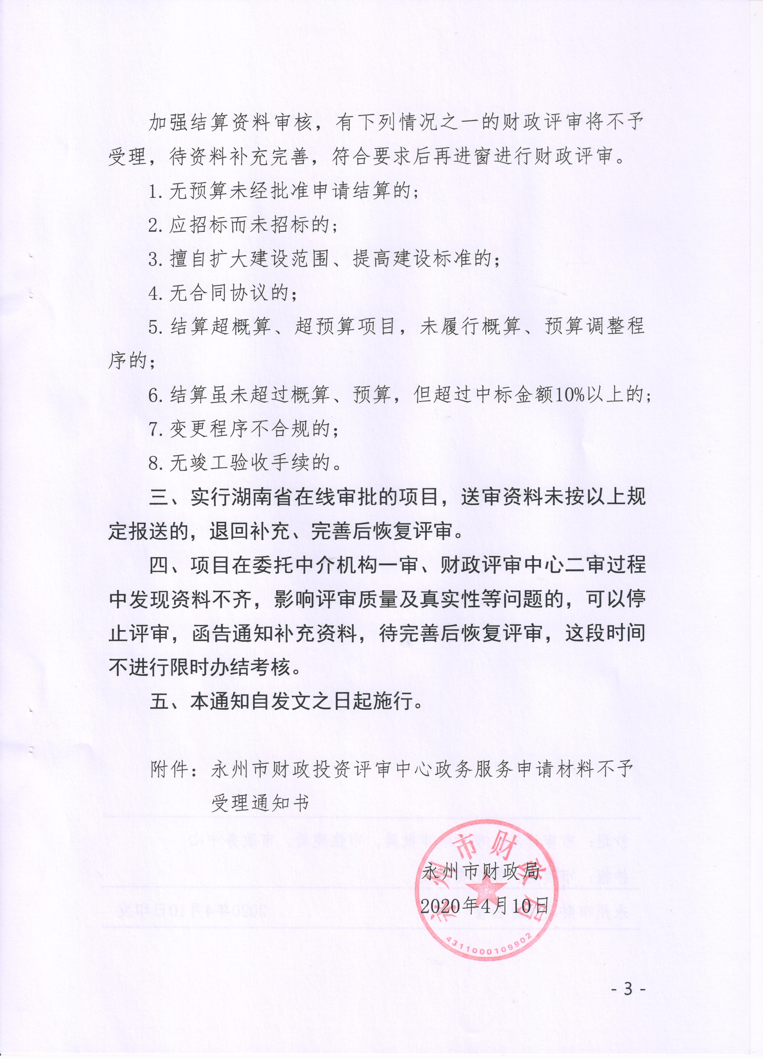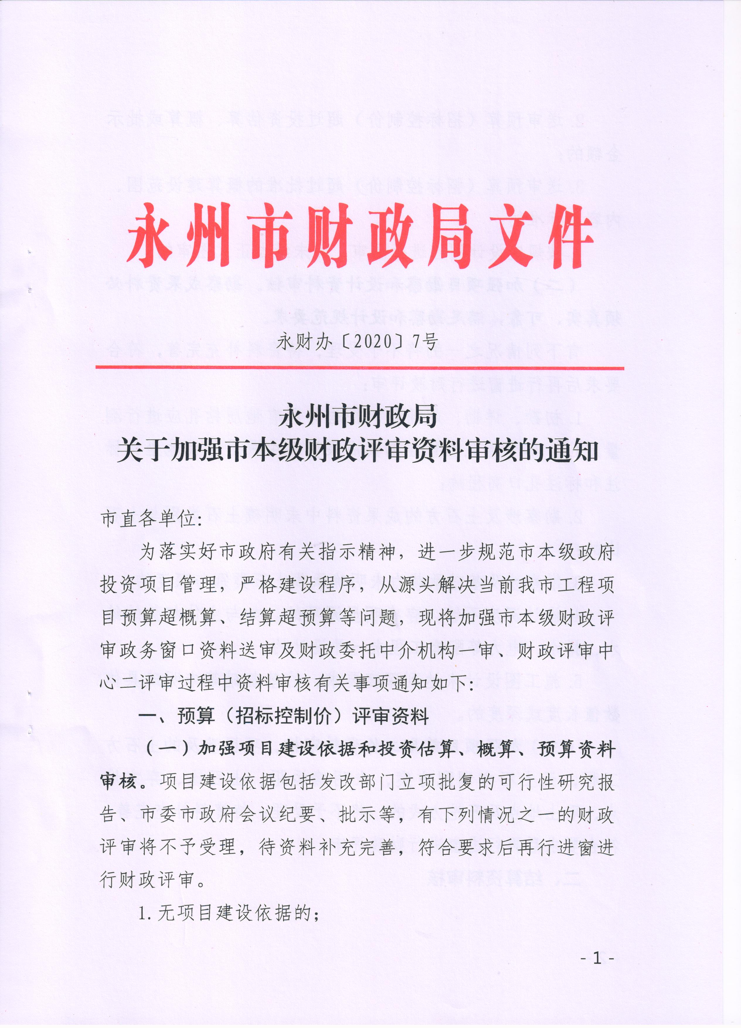 永州市财政局关于加强市本级财政评审资料审核的通知(永财办〔2020〕7号)