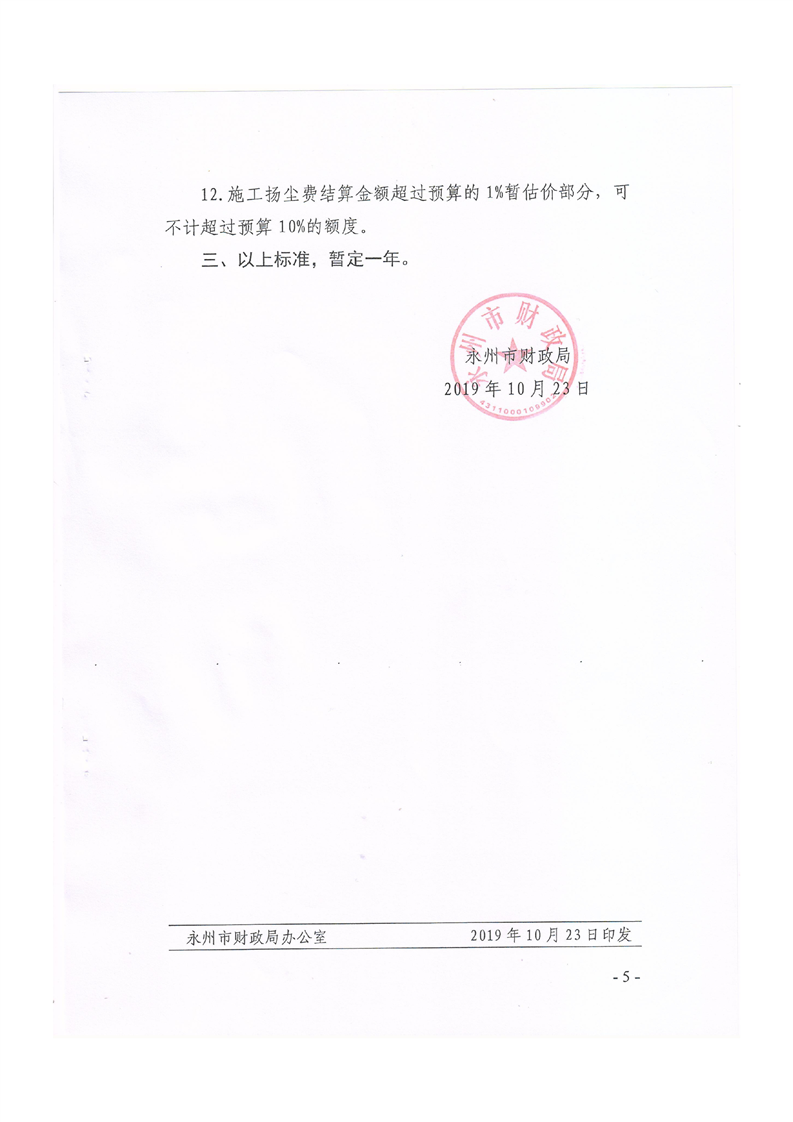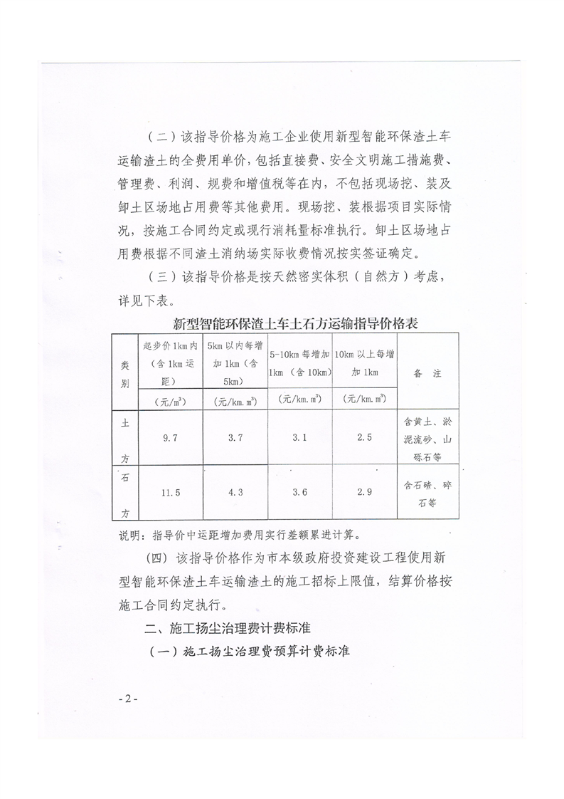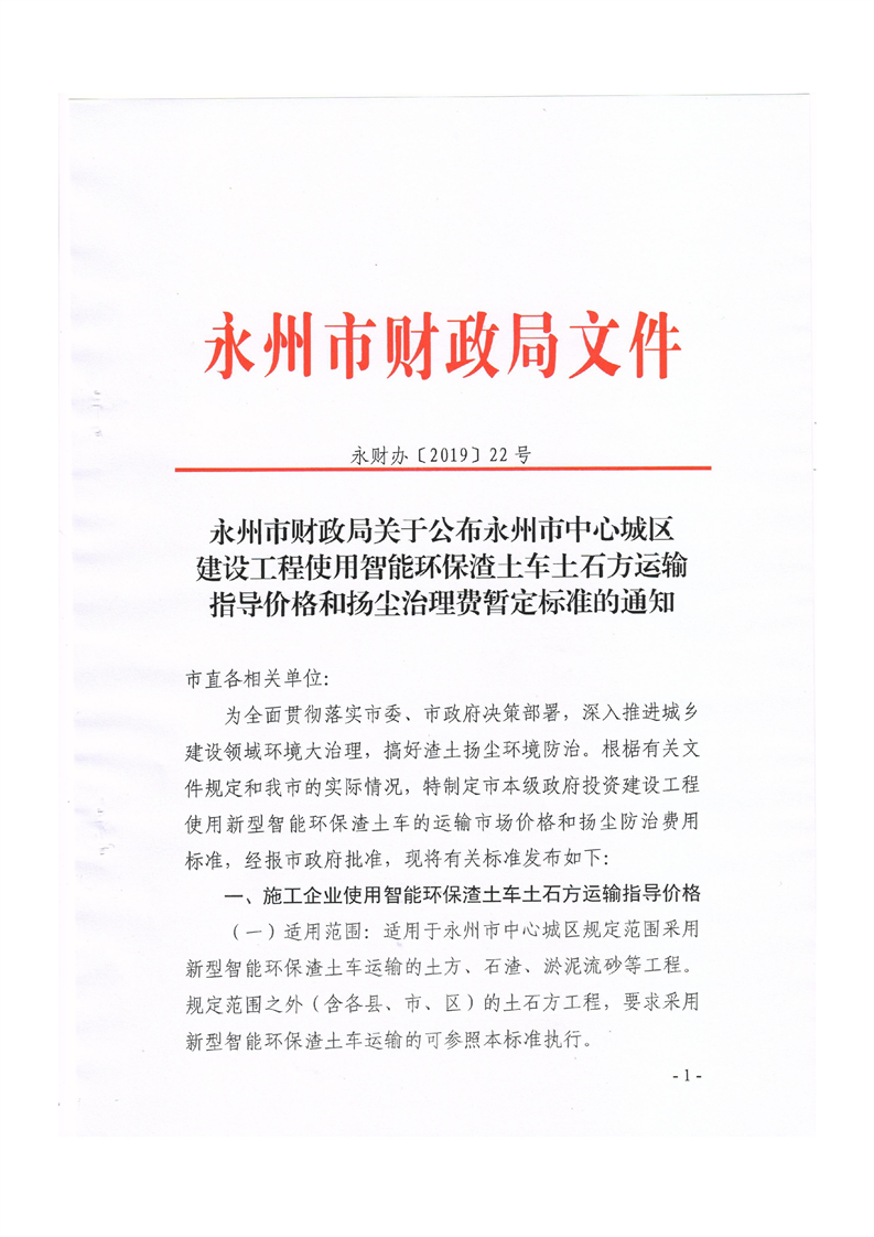 关于公布永州市中心城区建设工程使用智能环保渣土车土石方运输指导价格和扬尘治理费暂定标准的通知