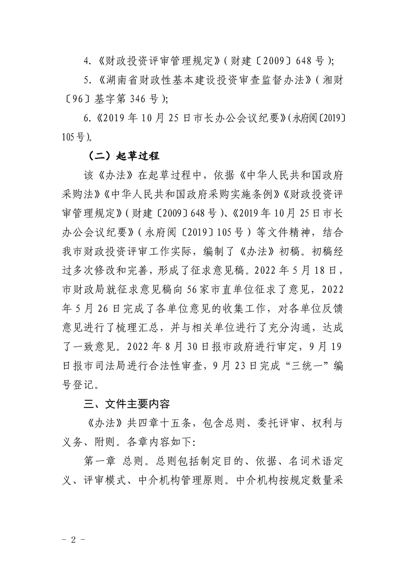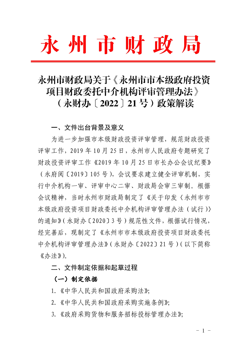 永州市财政局关于《永州市市本级政府投资项目财政委托中介机构评审管理办法》(永财办〔2022〕21号)政策解读