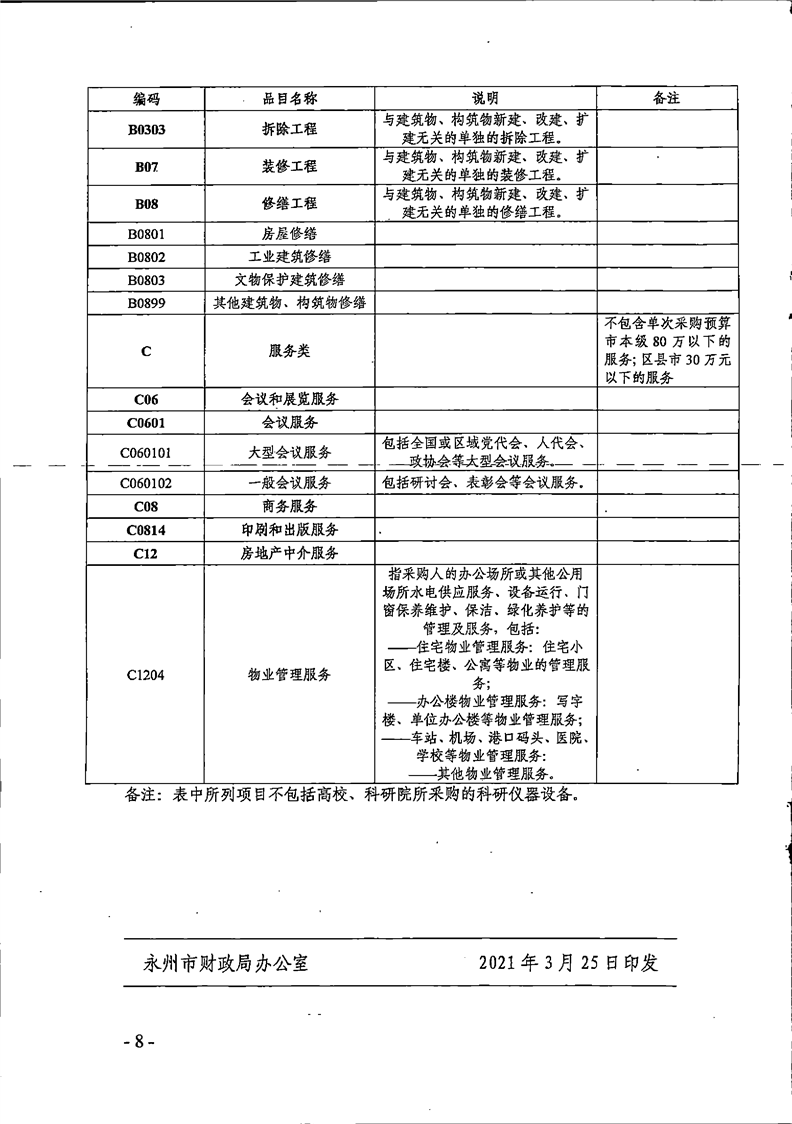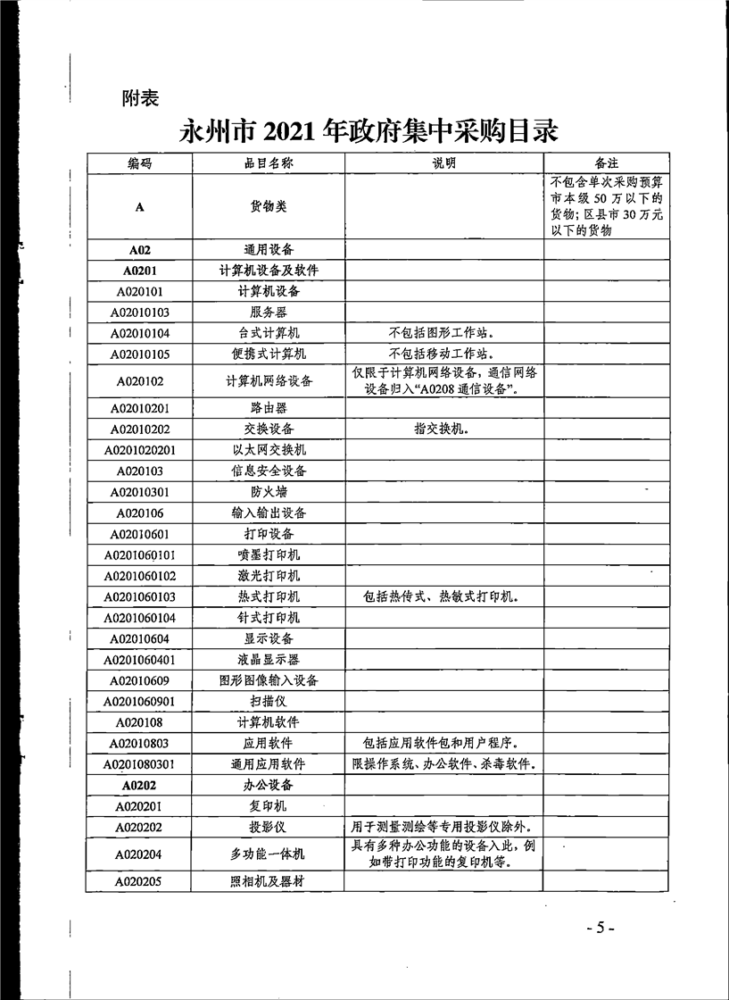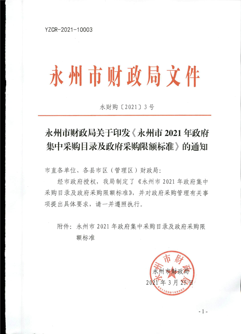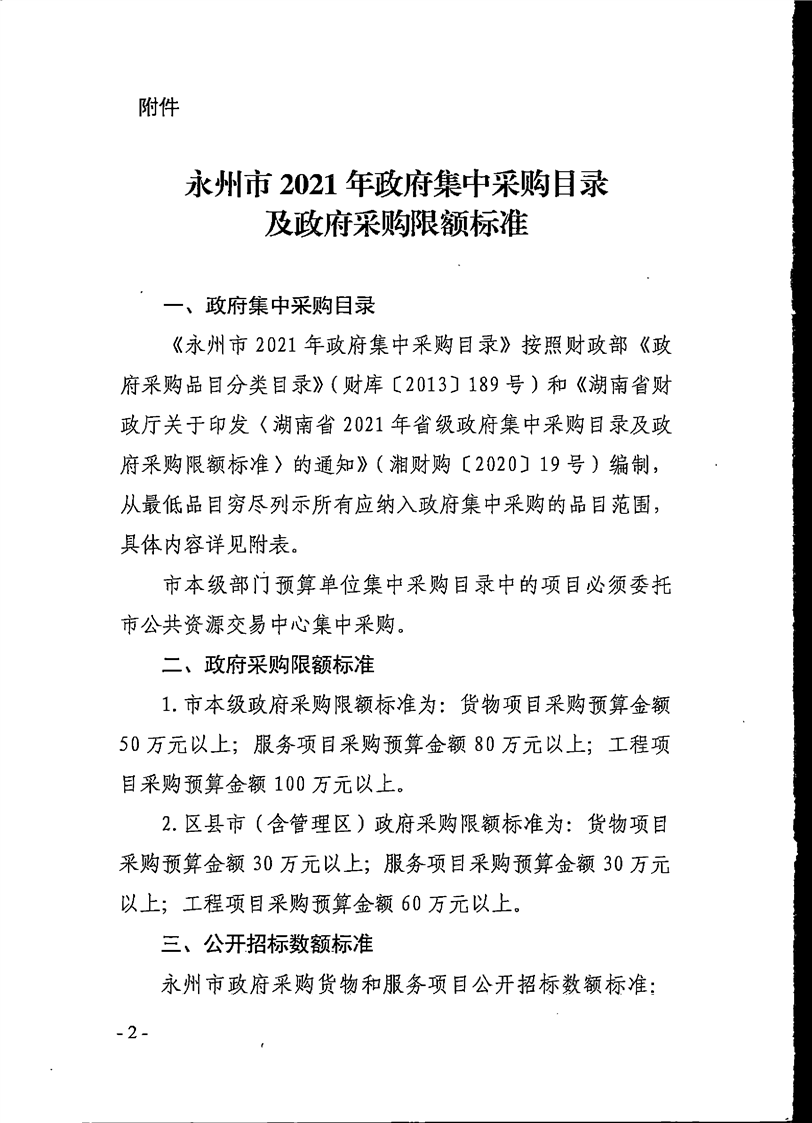 关于《永州市2021年政府集中采购目录及政府采购限额标准》政策解读