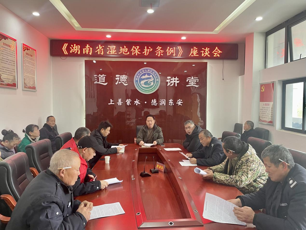 活动召开了座谈会,会上,与会人员围绕《湖南省湿地保护条例》、“湿地与传统知识”展开交流,共同探讨东安县本土与湿地相关的传统习俗、保护做法,梳理湿地保护中的成功经验与生态理念。东安县林业局工作人员还结合多年湿地管护实践,分享了依托“湖南林业巡护系统”APP构建“天上看、地上巡、网上管”生态监测格局的经验做法,详解了湿地保护与野生动植物栖息地守护的联动机制。