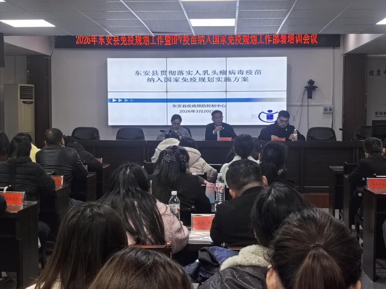 新湖南客户端3月23日讯(通讯员 文武 何银霞)3月20日下午,东安县卫生健康局组织县疾控中心、各乡镇卫生院召开2026年全县免疫规划工作会议暨HPV疫苗纳入国家免疫规划部署培训会议。