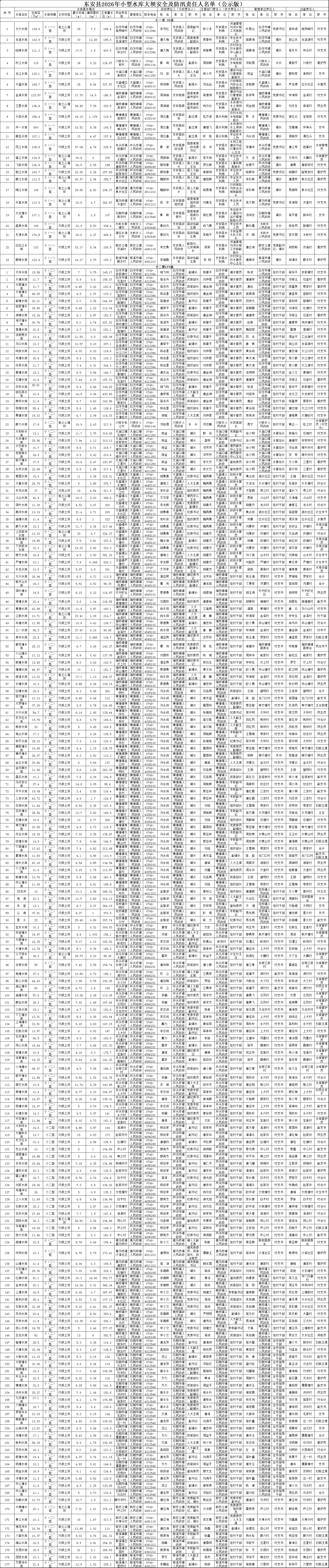 东安县2026年小型水库大坝安全及防汛责任人名单
