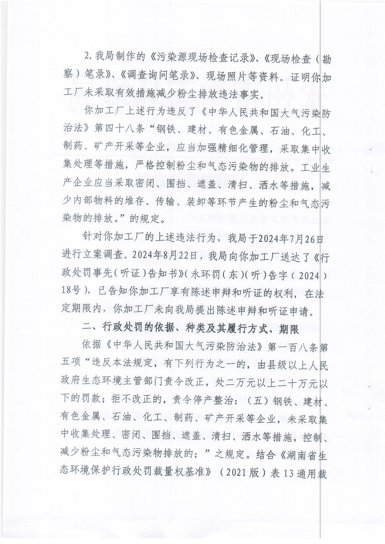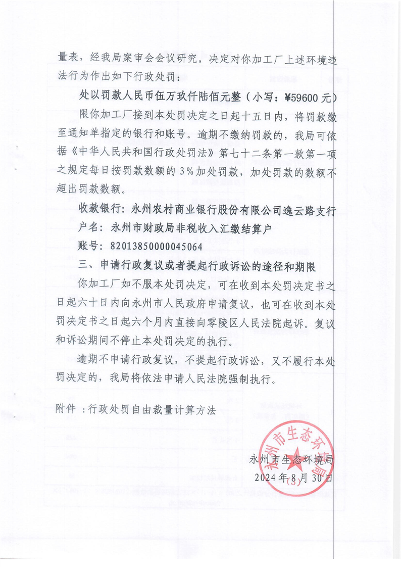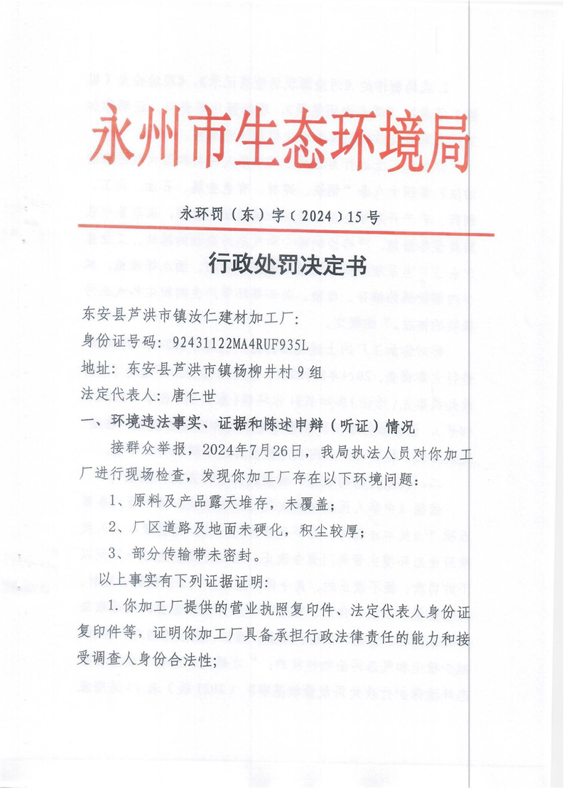 永州市生态环境局行政处罚决定书 永环罚(东)字﹝2024﹞15号