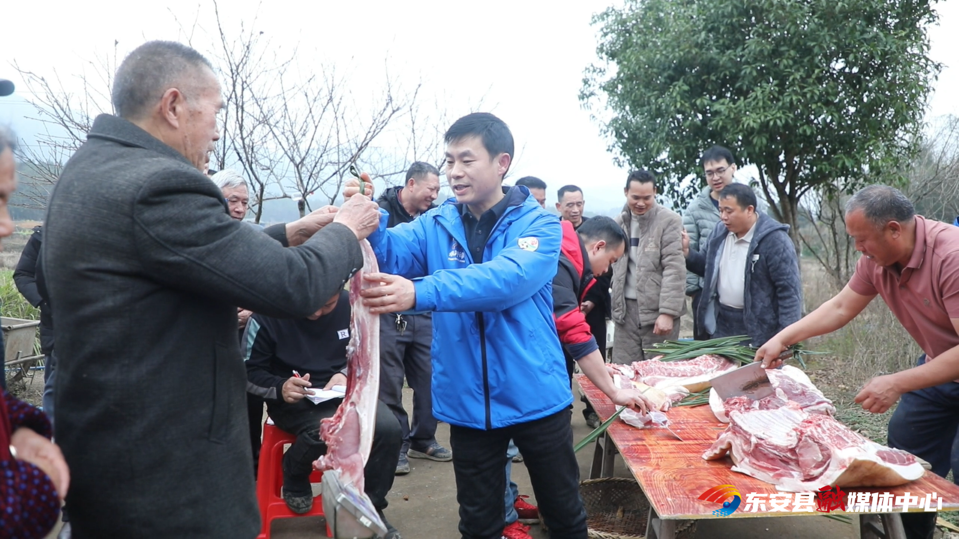 “我一直在外面做生意,没有时间,趁着过年,村里有年终聚会,想尽自己的一份力量啊,所以我自发从农村买了一头土猪送给村里,60岁以上老人1户1份,让他们感受到游子的一份心意,一份爱。”东安县水岭乡下丰村村民陈荣建说道。