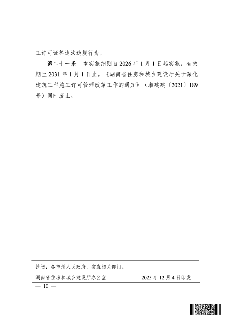 关于印发《湖南省房屋建筑和市政工程施工许可管理实施细则》的通知