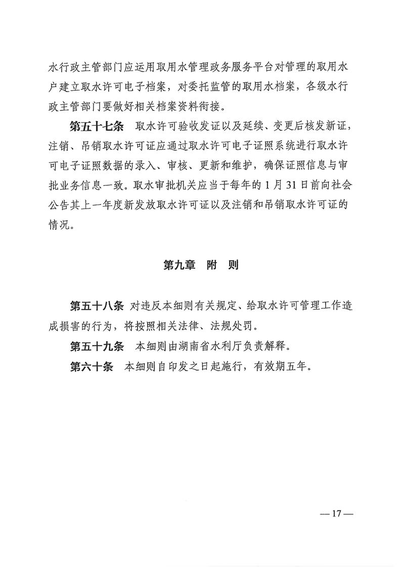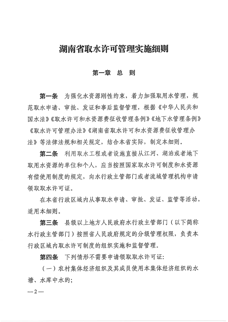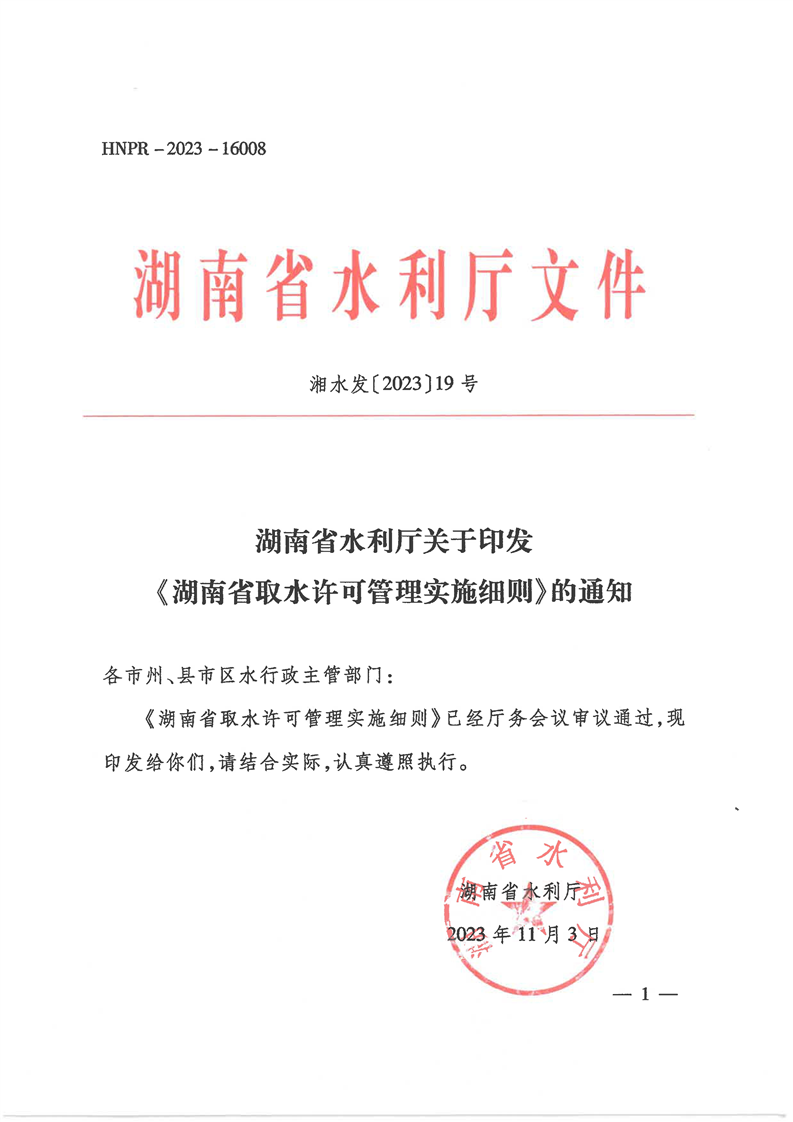 湖南省水利厅关于印发《湖南省取水许可管理实施细则》的通知